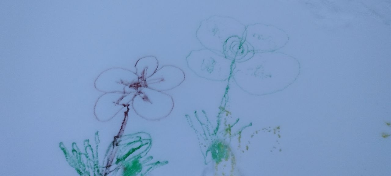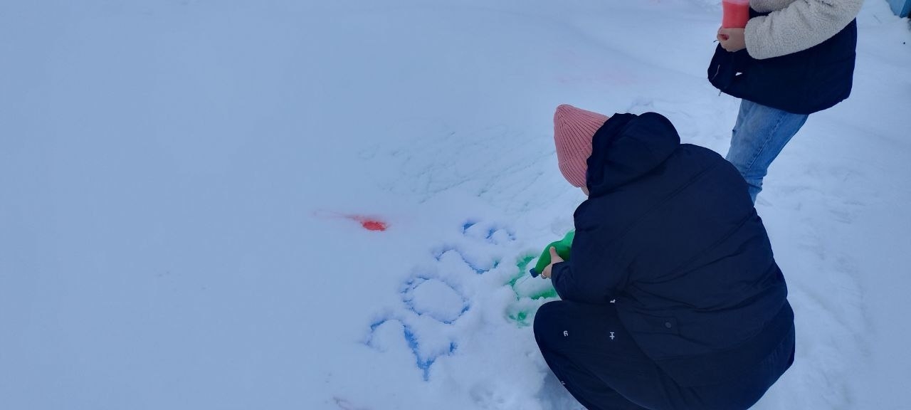 Каждому ребенку досталось собственное «снежное полотно», на котором он мог создать свой шедевр. Дети выводили снежинки, ангелов, елочные игрушки, цветы и уютные домики, превращая заснеженный двор в галерею под открытым небом.