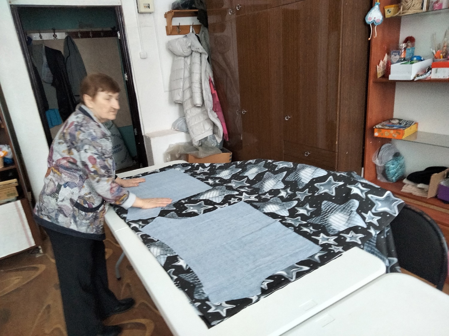 Кажется, будто они и не уходили домой – активистки общественной организации «Открытые сердца» Ольга Коряковцева, Татьяна Савиночкина и Галина Иванцова вновь заняты важным делом. Сегодня их задача – срочно накроить термобельё и нижнее бельё, чтобы уже завтра начать пошив для российских бойцов.