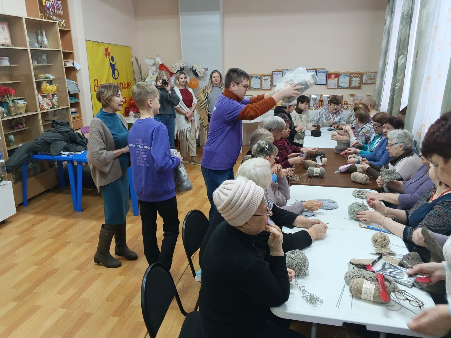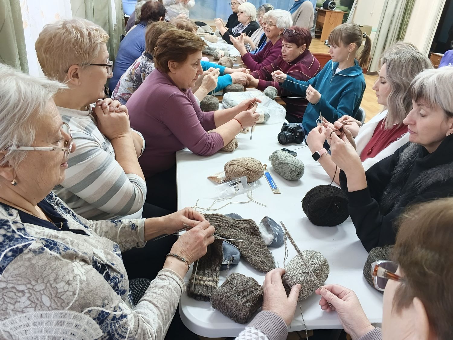 В общественной организации «Открытые сердца» состоялся душевный и значимый мастер-класс «С теплом и любовью», посвящённый одной из самых трогательных традиций русского народа — вязанию тёплых носков для солдат.