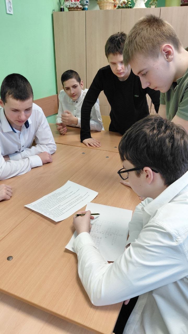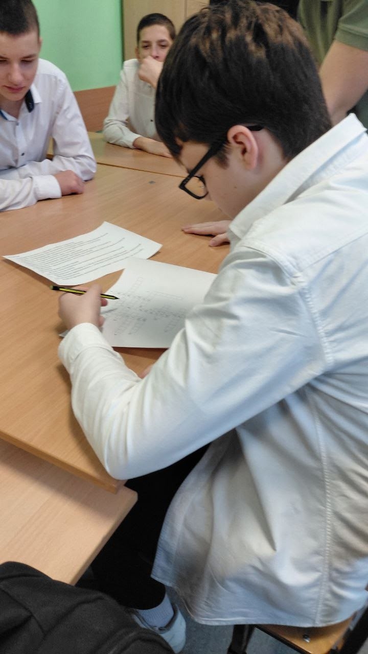 Завершился классный час командной игрой: восьмиклассники разделились на группы и разгадывали тематический кроссворд.