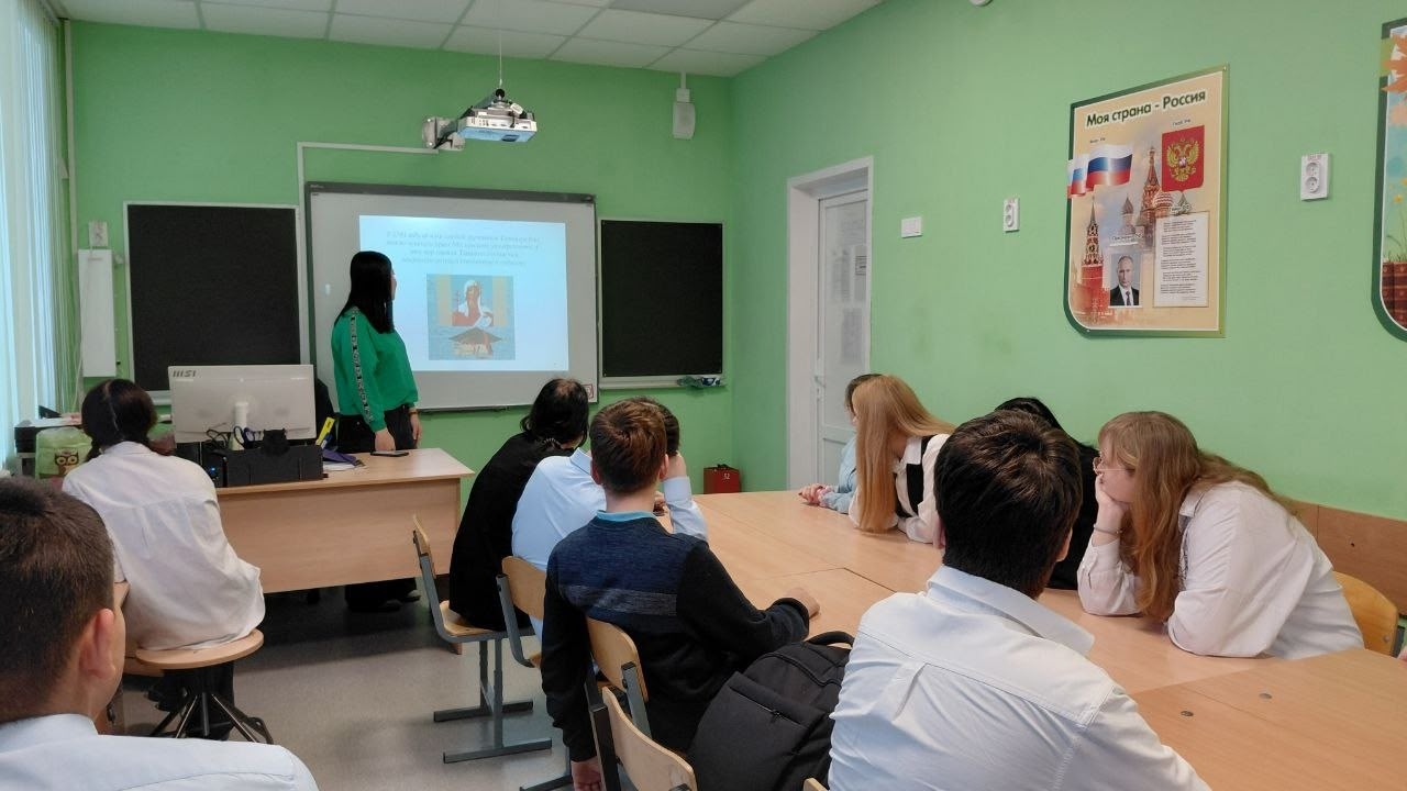 В 8 «В» классе Плавской школы № 2 прошёл тематический классный час, приуроченный к Дню российского студенчества и Дню святой Татьяны, который подготовила и провела ученица Татьяна Максимова.