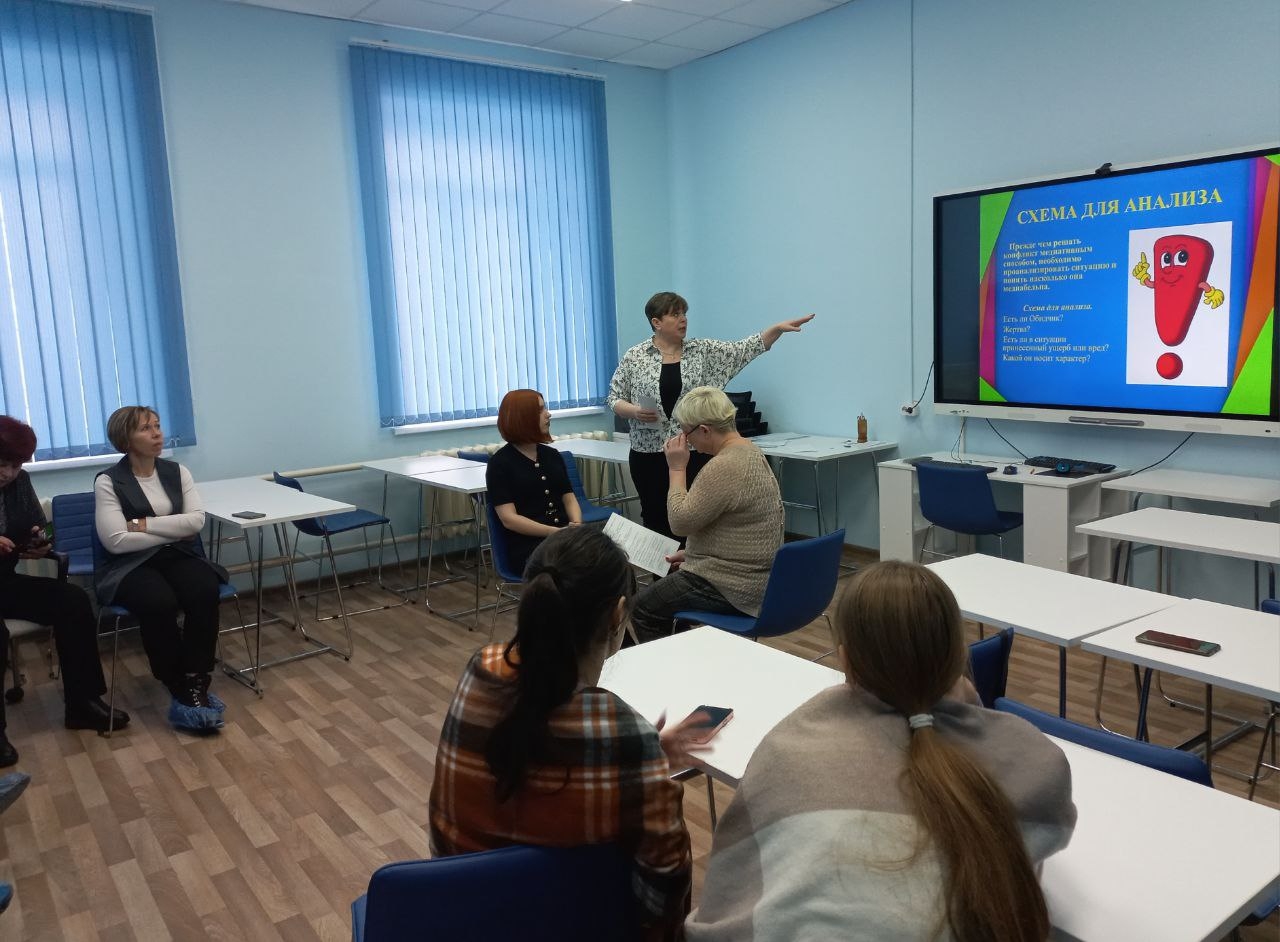 Педагоги первой школы осваивали тактику проведения медиации на четвёртом занятии на тему «Основы медиации: принципы, правила, этапы, формы работы».