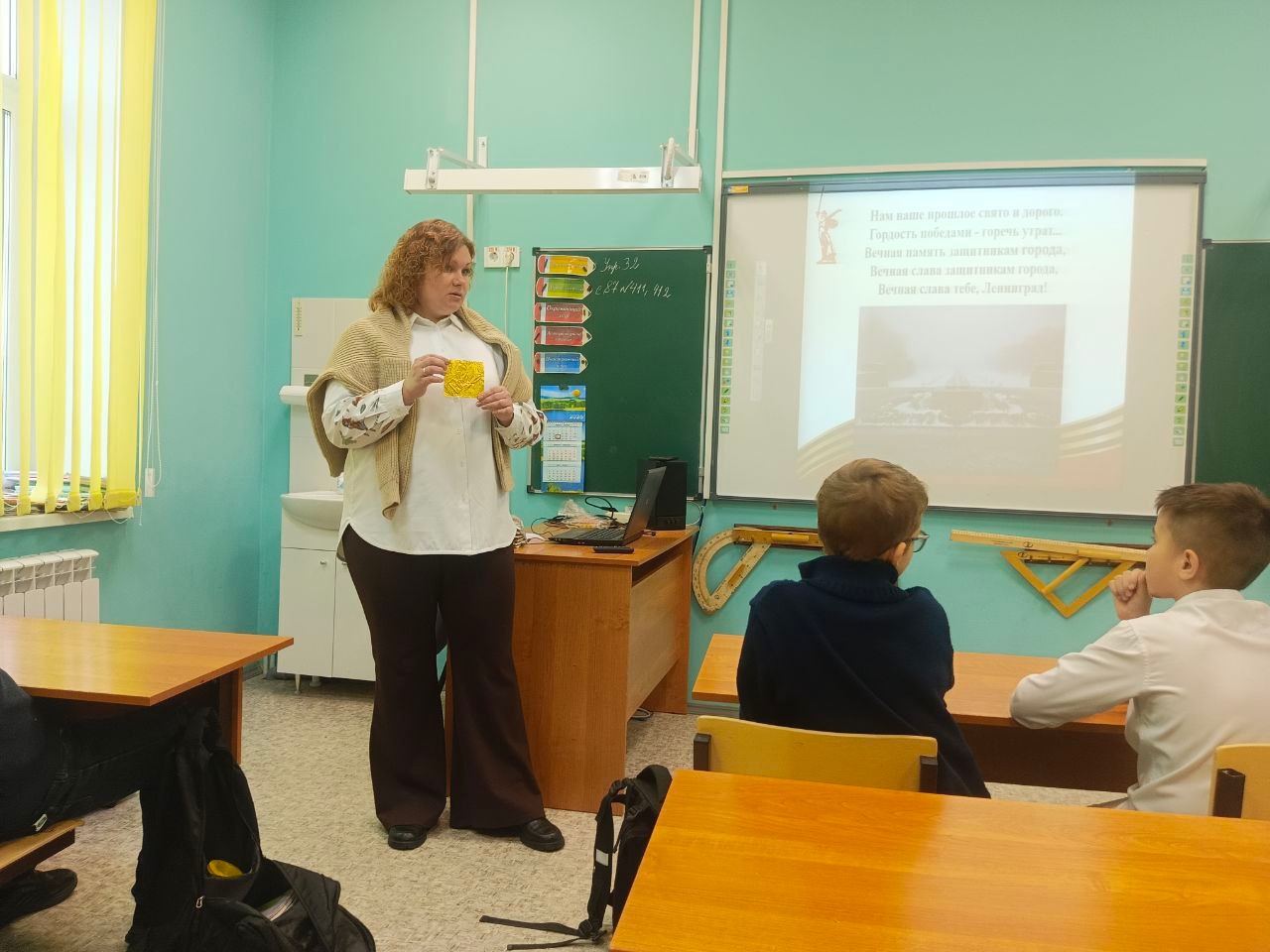 Во время Всероссийской акции памяти «Блокадный хлеб» активисты Движения Первых из Центра образования №2 под руководством советника директора по воспитанию провели мероприятие, посвященное героизму и стойкости жителей осажденного Ленинграда.