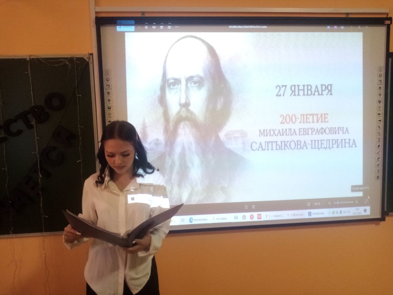 В 9 классе Плавской школы №4 прошел литературный час, посвященный 200-летию со дня рождения Михаила Евграфовича Салтыкова-Щедрина, выдающегося русского писателя, сатирика и общественного деятеля.