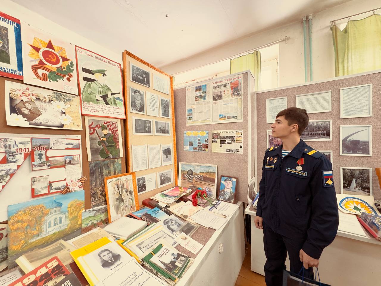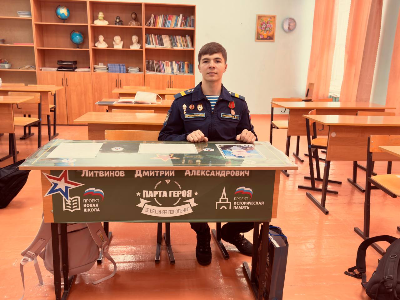 Отдельный этап посещения был посвящён знакомству с памятной партой, установленной в честь Дмитрия Литвинова, участника специальной военной операции.