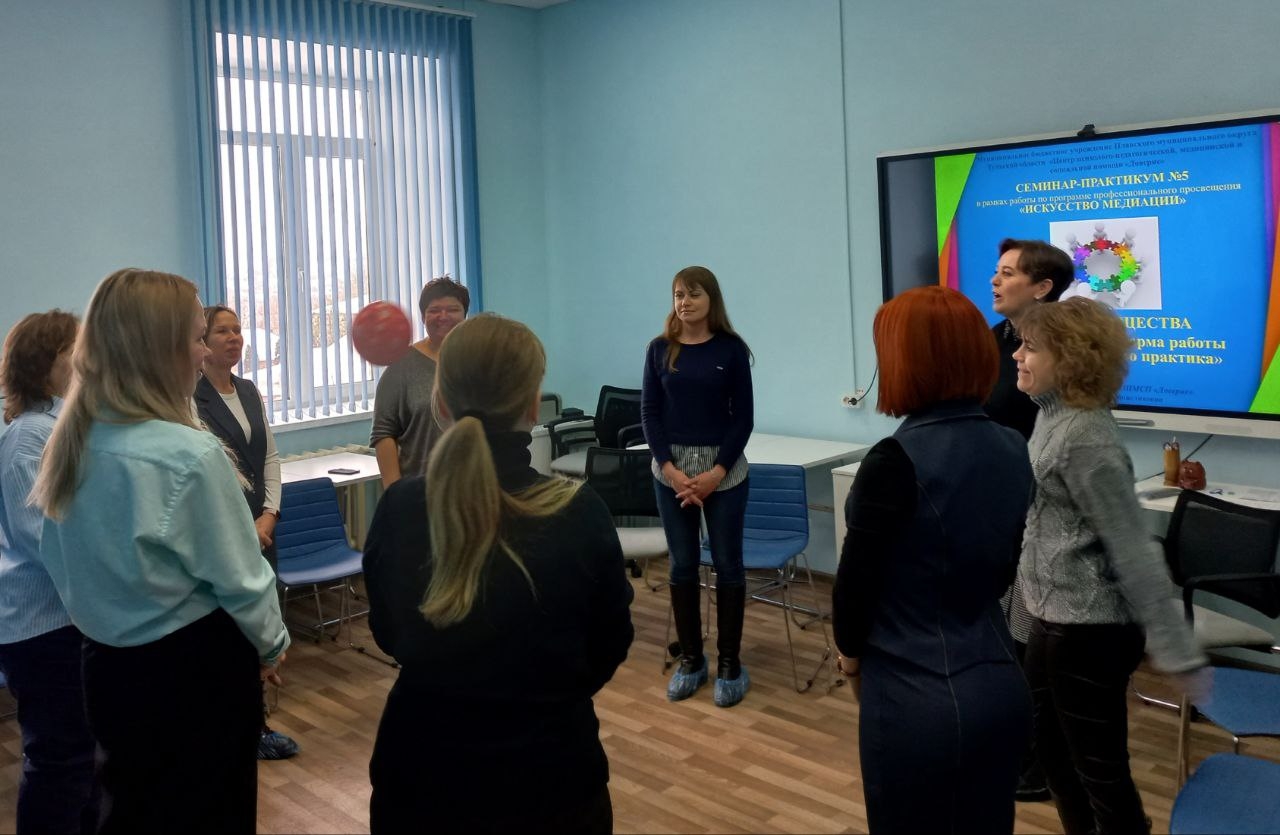 На пятом занятии педагогов Плавской школы № 1 им. дважды Героя Советского Союза Б.Ф. Сафонова педагог Центра «Доверие» познакомила с одной из самых востребованных форм работы восстановительного практика (медиатора).
