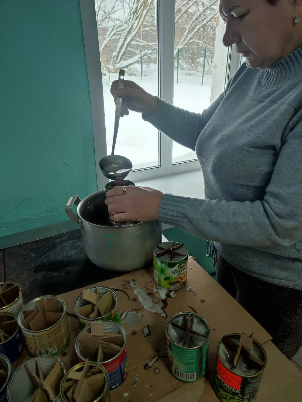 В коробки попали консервированные продукты, сладости и, обязательно, окопные свечи, которые так необходимы в полевых условиях.