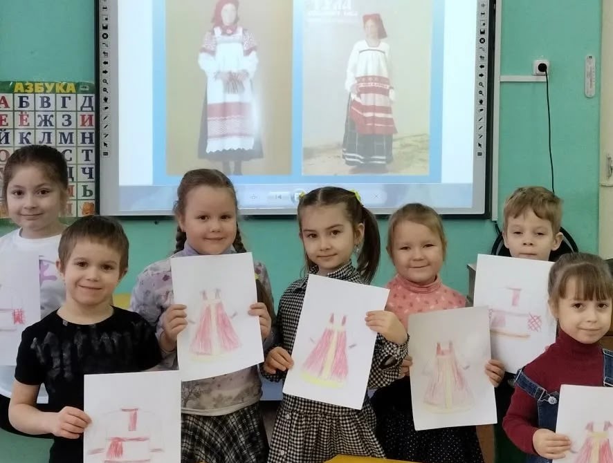 Со своим педагогом Мариной Новиковой дети изучали элементы тульского народного костюма, его историю и увидели, как одевались наши предки.