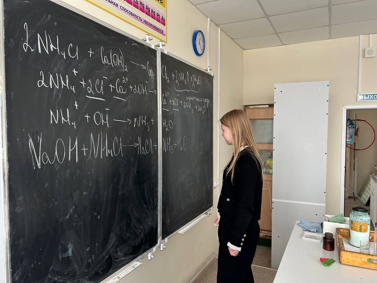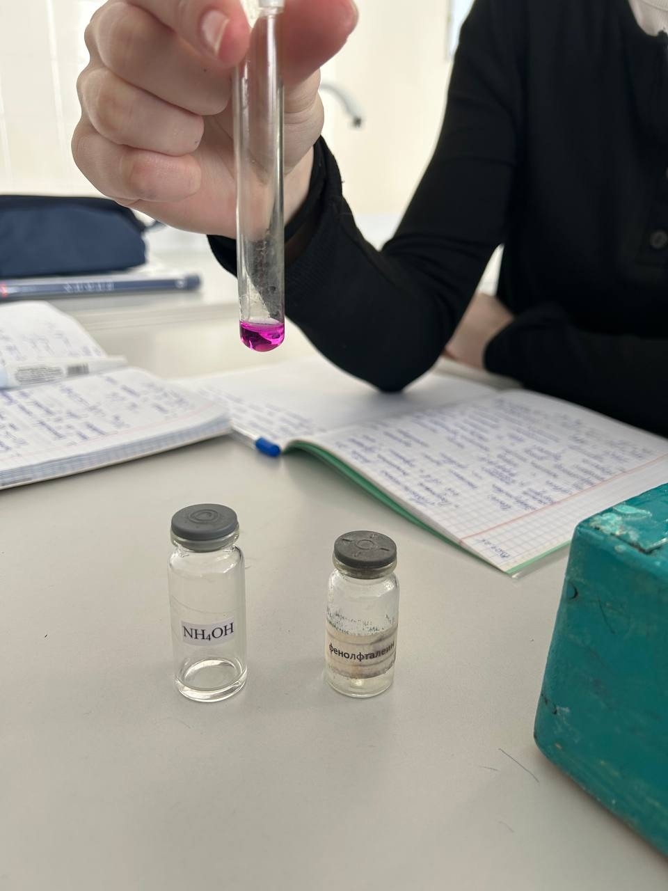 Из химических реактивов старшеклассники получили аммиак на занятии в «Точке роста». При помощи хлорида аммония и гашеной извести девятиклассники получили аммиак, распознали его по резкому неприятному запаху и по посинению смоченной индикаторной бумаге. Провели реакцию нейтрализации водного раствора аммиака с кислотой, в соответствии с правилами безопасного обращения с химическими веществами и правилами пользования химической посудой, описали свойства веществ и свои наблюдения в ходе эксперимента.