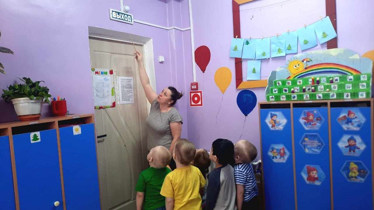 Особое внимание было уделено элементам системы безопасности здания. Дошкольники узнали, где в детском саду расположена тревожная кнопка экстренного оповещения, и закрепили алгоритм действий при её активации. Также воспитанники научились распознавать эвакуационные знаки – в частности, табличку «Выход», поняв её ключевую роль при быстрой и безопасной эвакуации.