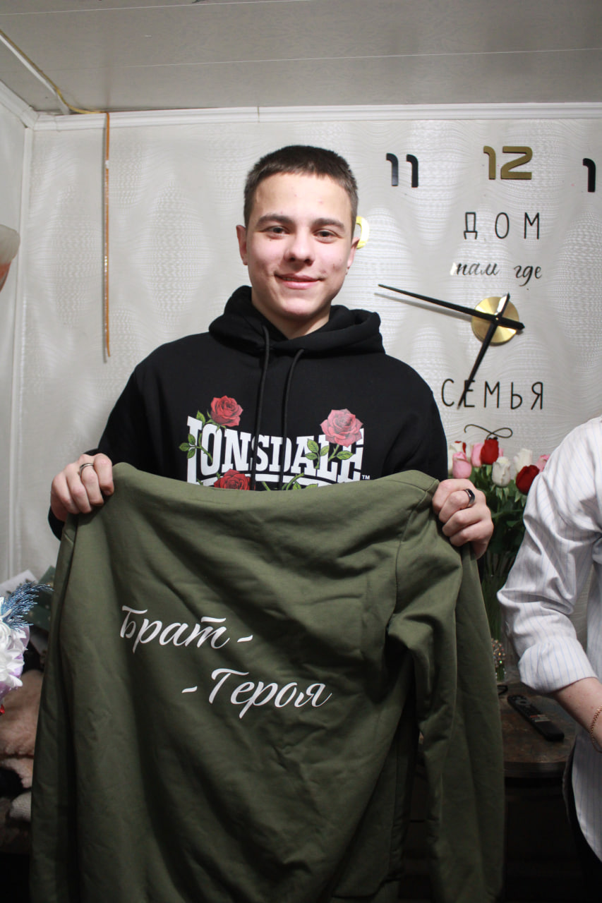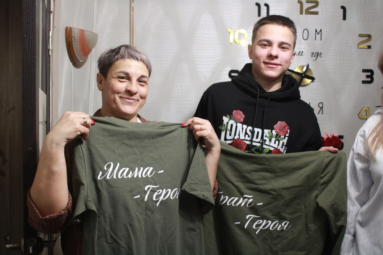 Ярославу и Вере Николаевне вручили памятные подарки с символикой проекта: футболки с надписями «Брат Героя» и «Мама Героя».