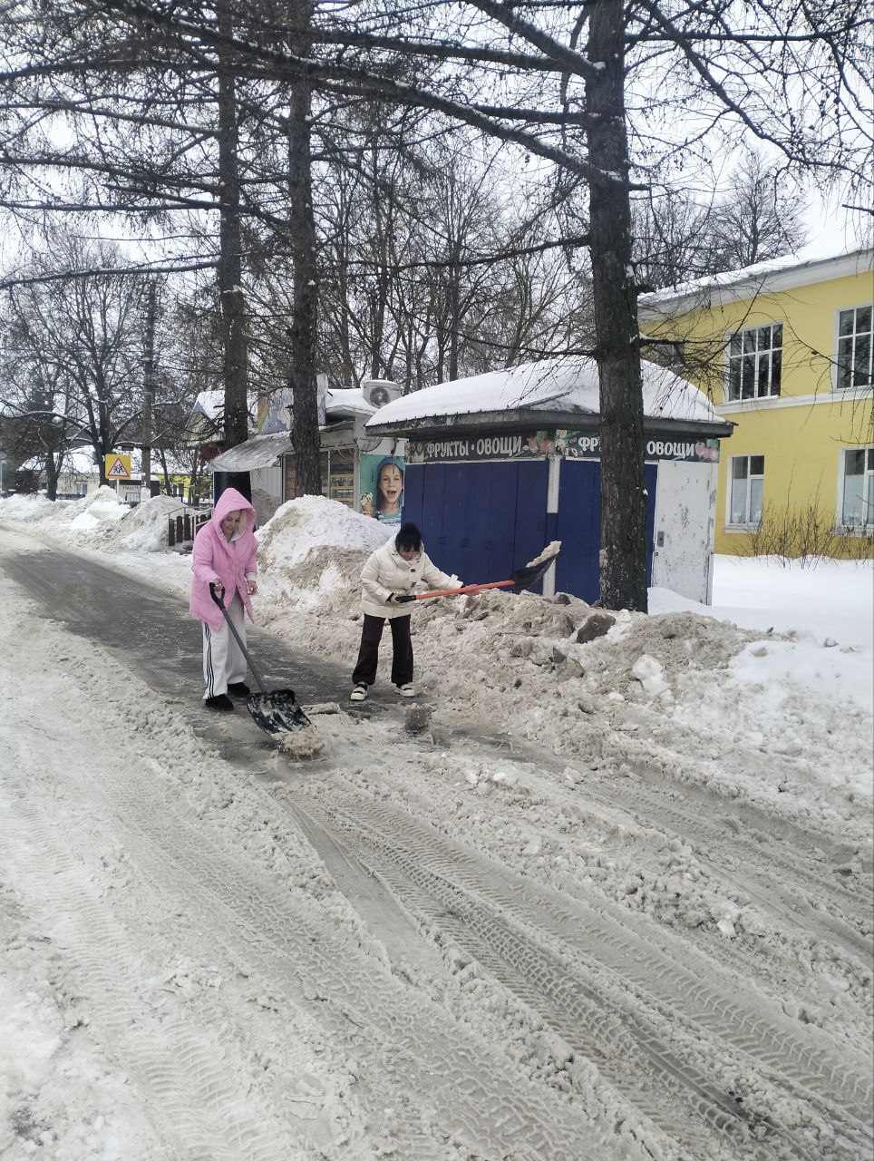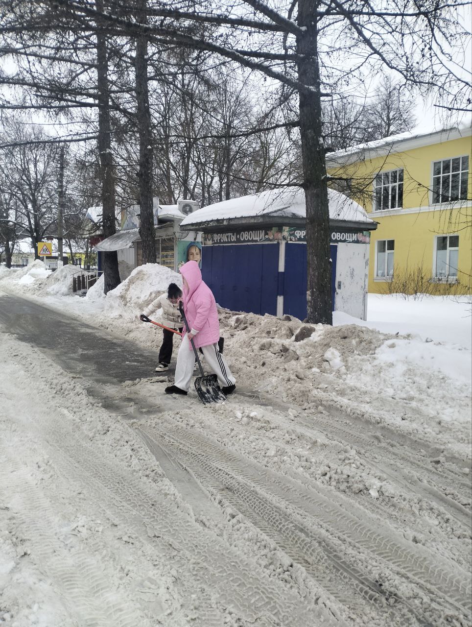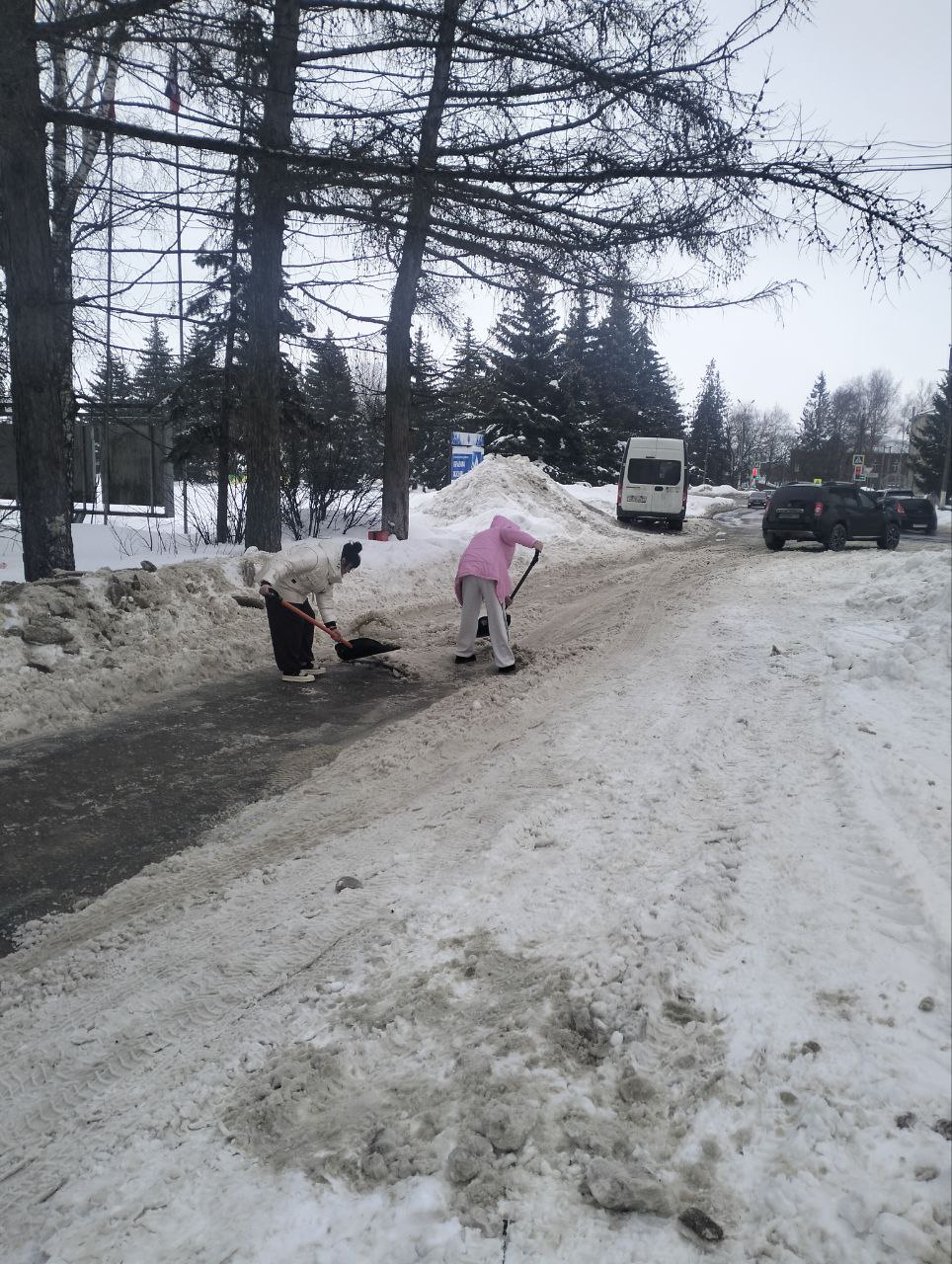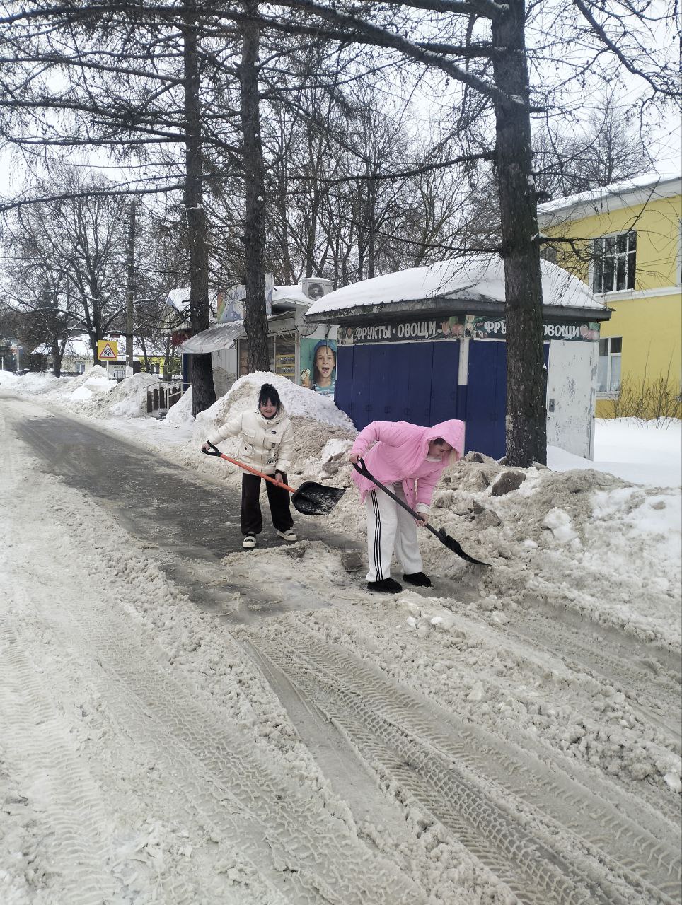 Девушки не просто сгребли снег, они тщательно очистили покрытие до самого асфальта, убрав даже лёд, чтобы никто не поскользнулся. И сделали это без призывов, без ожидания благодарности просто потому, что видели, что это нужно.