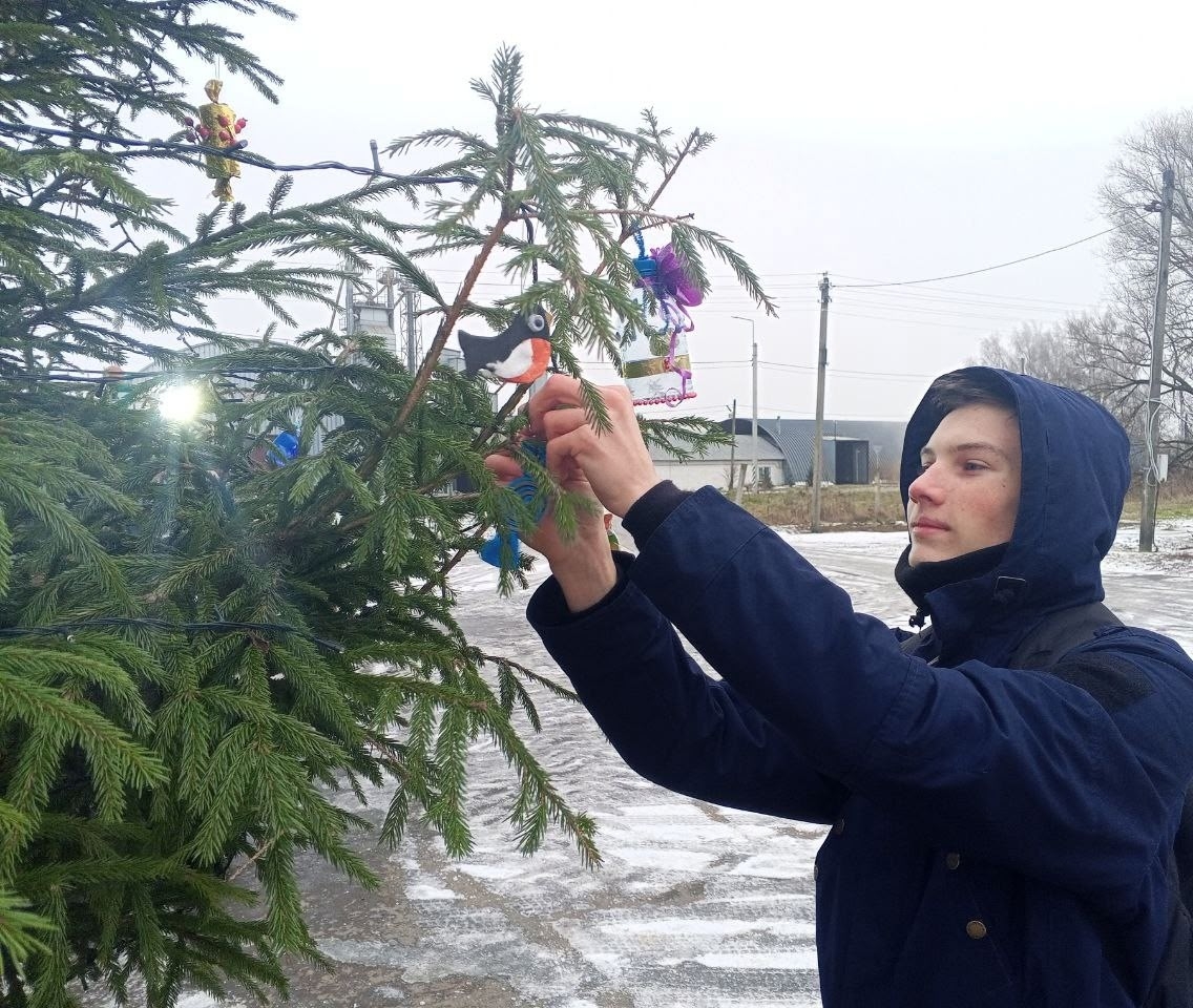В деревне Новое Жуково, у стен храма в честь святой равноапостольной Нины, засияла праздничная новогодняя елка.