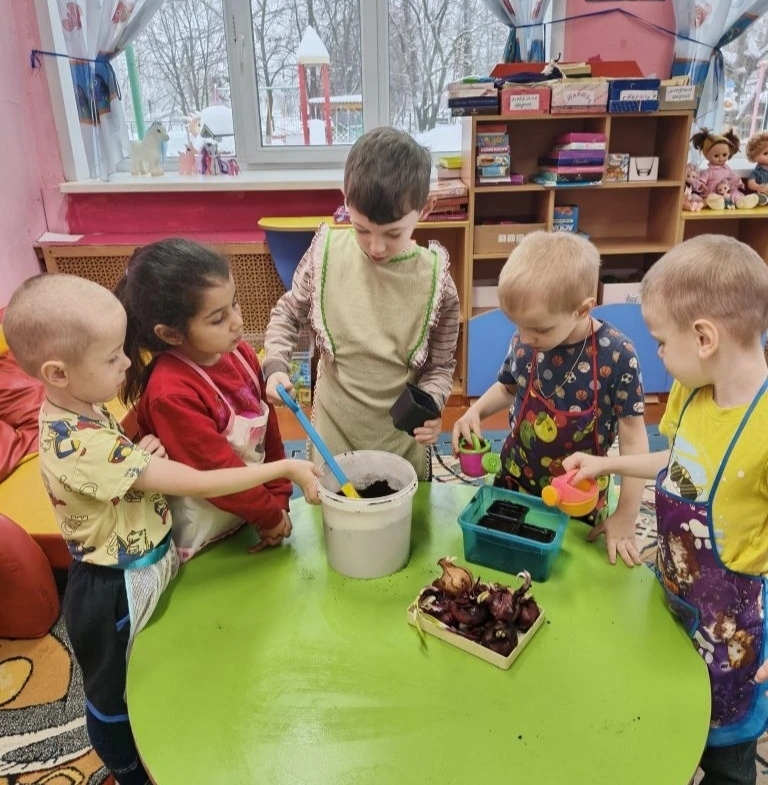 Воспитанники детского сада при Центре образования №4 начали увлекательный экологический проект – посадку лука на подоконнике. Под руководством воспитателя ребята посадили луковицы и взяли на себя заботу о будущем урожае.