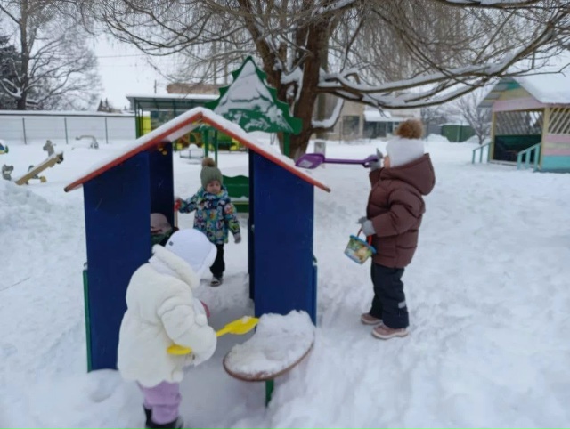 Воспитанники детского сада комбинированного вида № 1 участвуют в уборке снега на прогулочном участке.