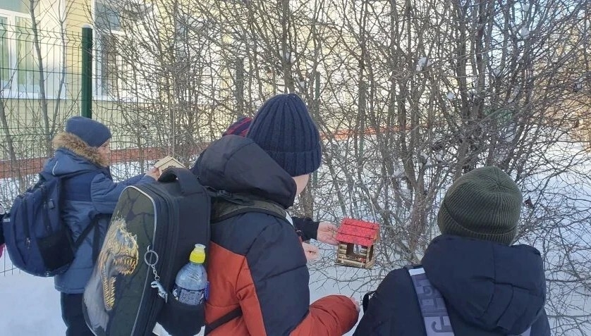 Ученики 3 «А» класса Плавской школы №2 включились в муниципальную экологическую акцию «Кормушка».