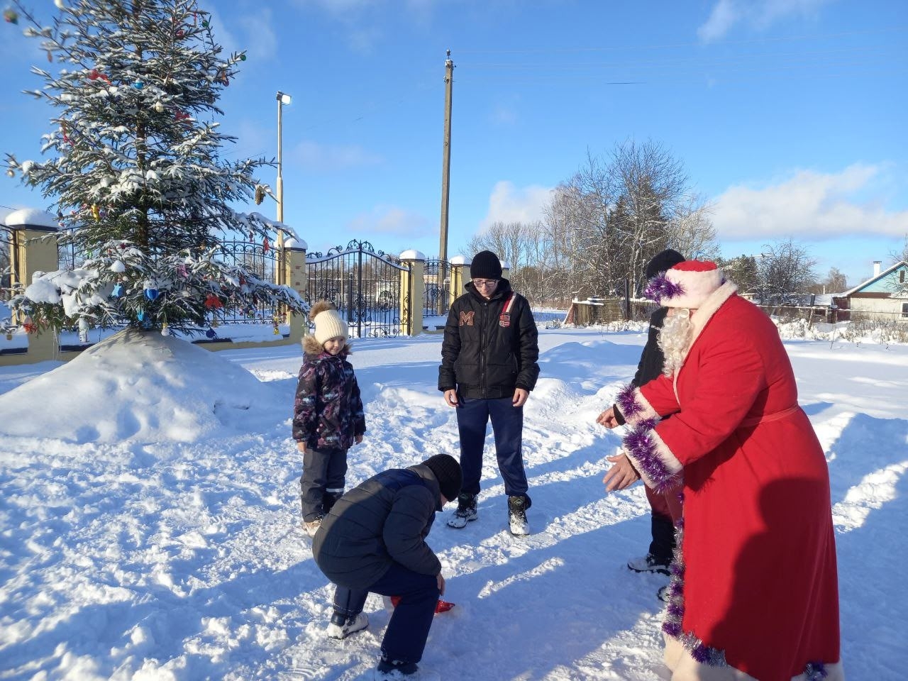 Ученики Ольховской школы стали участниками конкурсно-игровой программы «Эх, прокачусь!», которая прошла у нарядной новогодней елки в деревне Новое Жуково.
