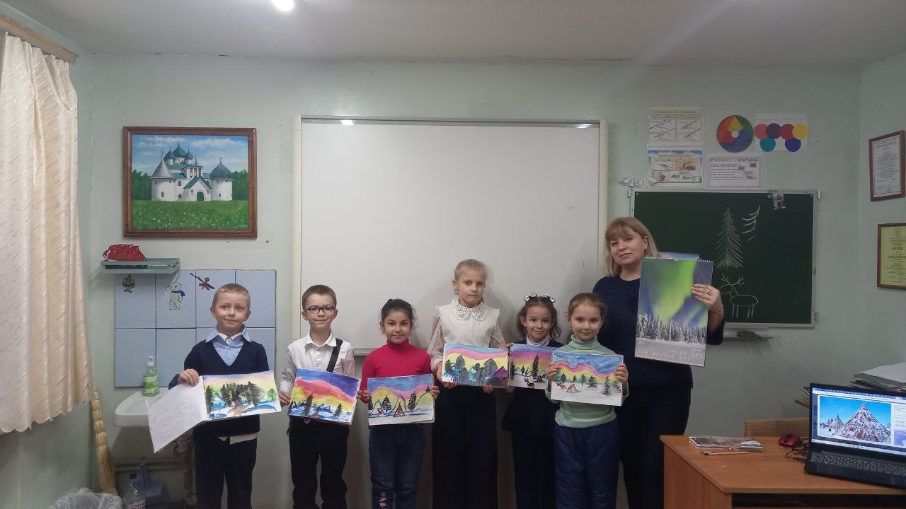Северное сияние – мистическое, непредсказуемое и красивое небесное свечение, внезапно проявляющееся, и точно так же исчезающее. Юные художники из объединения «Чудо-краски» Дома детского творчества под руководством педагога дополнительного образования Марии Криушичевой в ходе занятия решили передать красоту северного сияния при помощи акварельной живописи в технике по-сырому.