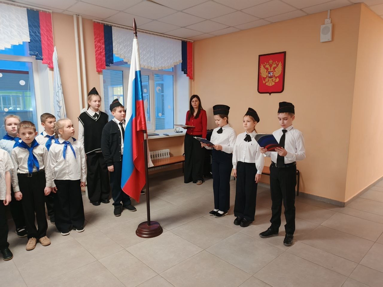 Этому была посвящена линейка перед началом учебных занятий. Был, по традиции, торжественно поднят флаг Российской Федерации.