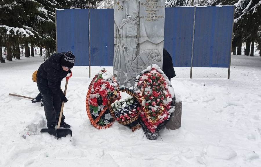 Учащиеся Молочно-Дворской школы Плавского района расчистили территорию памятного места в поселке от снега.