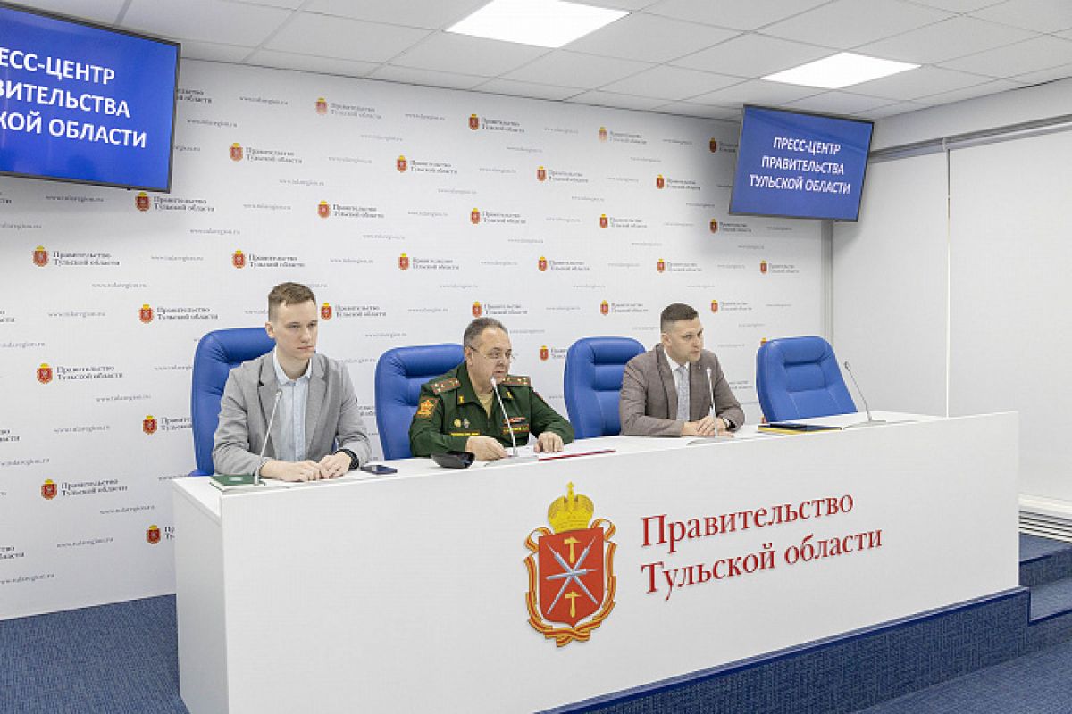 В здании правительства Тульской области состоялся брифинг для региональных СМИ, посвященный старту кампании по набору добровольцев для защиты особо важных объектов инфраструктуры. В брифинге приняли участие министр по региональной безопасности Анатолий Максиков и военный комиссар Тульской области Александр Сафронов.