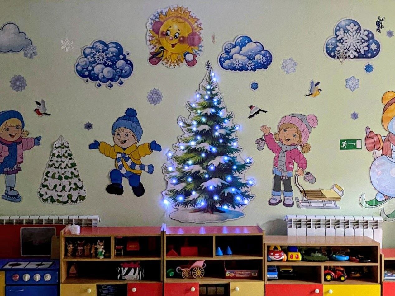 В преддверии Нового года воспитанники детского сада «Улыбка» своими руками зримо преображают привычный интерьер помещения, придавая ему при помощи простых предметов праздничный вид.