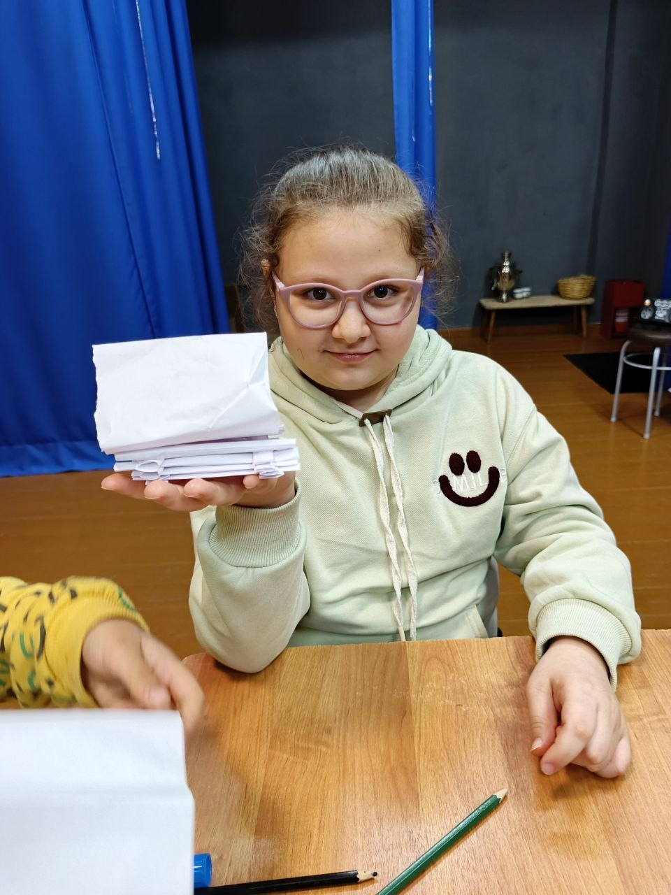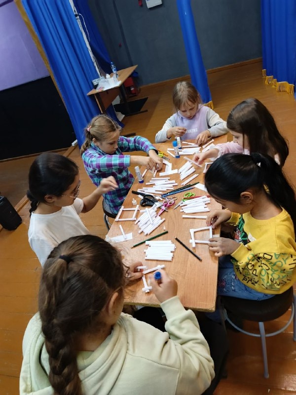 Под руководством опытного педагога ребята шаг за шагом учились вырезать детали из бумаги: стены, крышу. Каждый участник проявил фантазию, добавляя к своей избушке уникальные элементы декора.