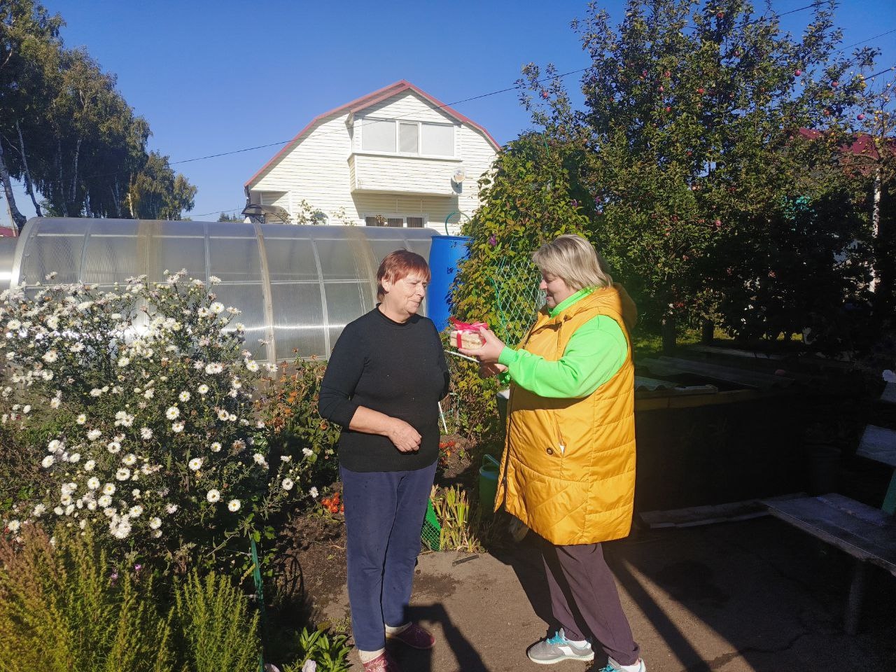Пожилые люди приняли гостей с поздравлениями на дому. Визит был наполнен уважением и вниманием и наполнен был теплыми словами и подарками.