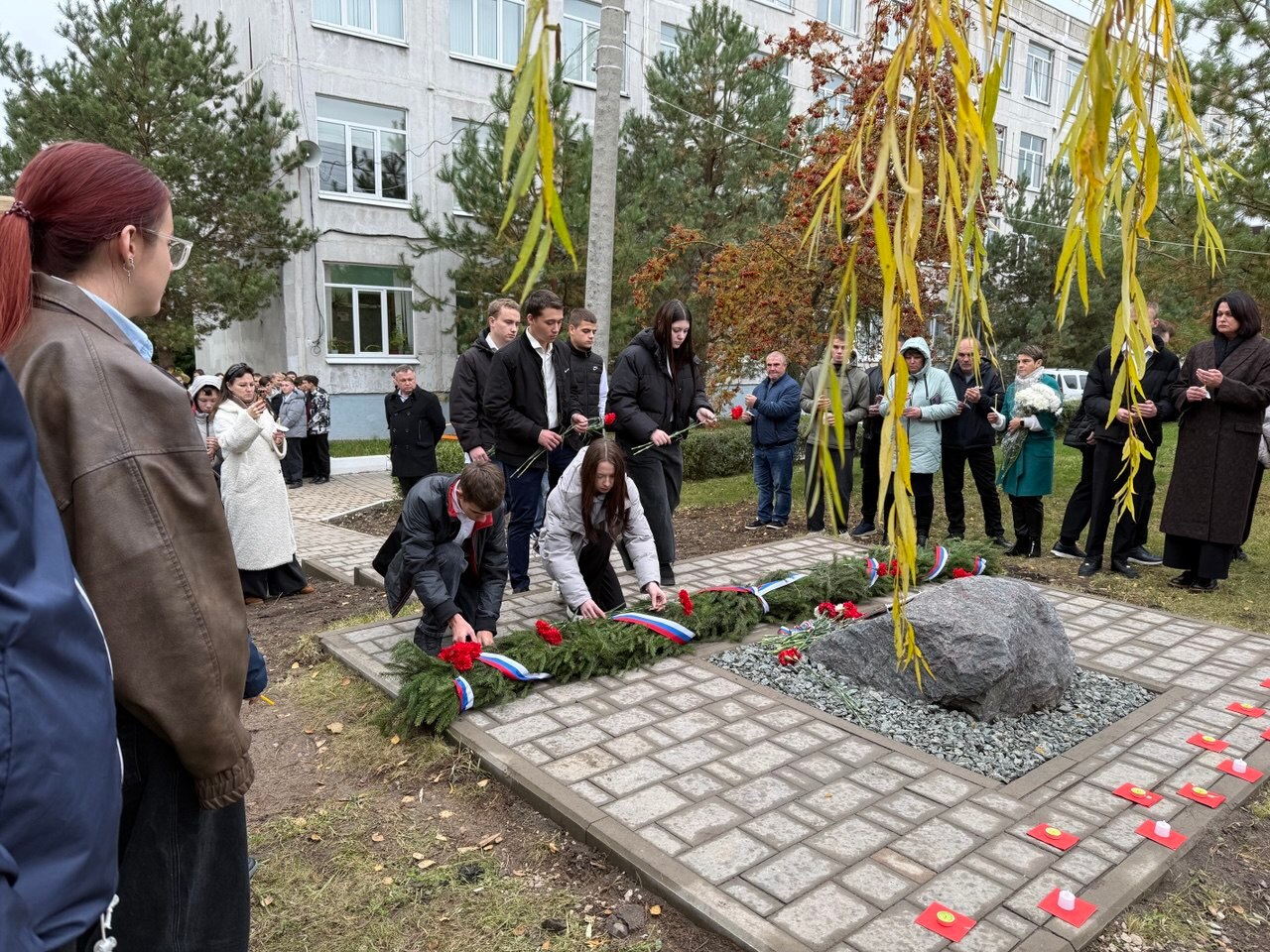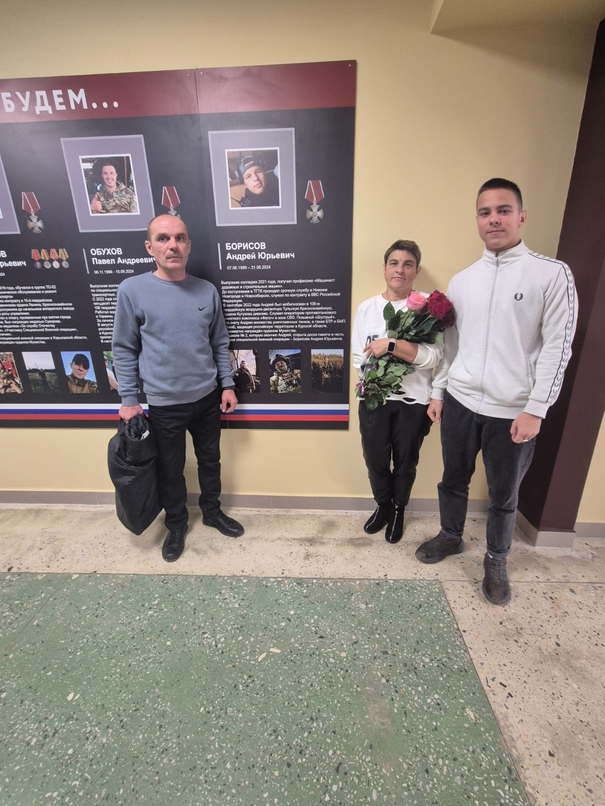 Утром в колледж пришли родные, однокурсники и педагоги погибших ребят. Встречу открыла директор колледжа Оксана Захарова, которая провела гостей по новой мемориальной экспозиции, посвящённой героям СВО — выпускникам колледжа.