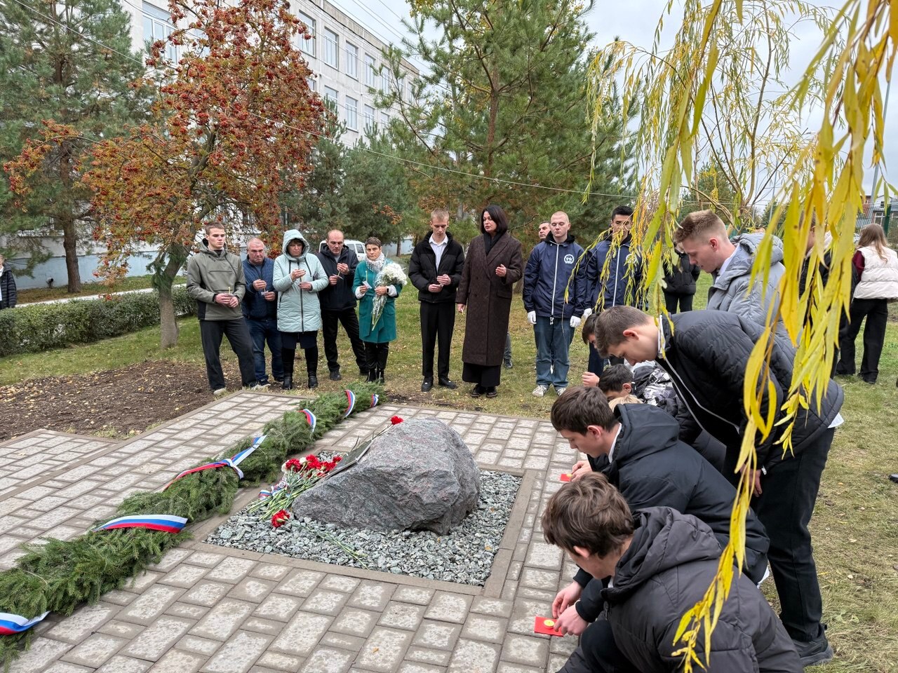 Затем состоялся митинг у поклонного камня, установленного в их честь. Студенты, преподаватели и гости почтили память павших минутой молчания. По доброй русской традиции были зажжены поминальные свечи, к камню возложили цветы, а родные посадили плакучие ивы — символ скорби и вечной памяти. Также была вынесена гирлянда памяти и чести, ставшая ещё одним знаком уважения к подвигу молодых людей.