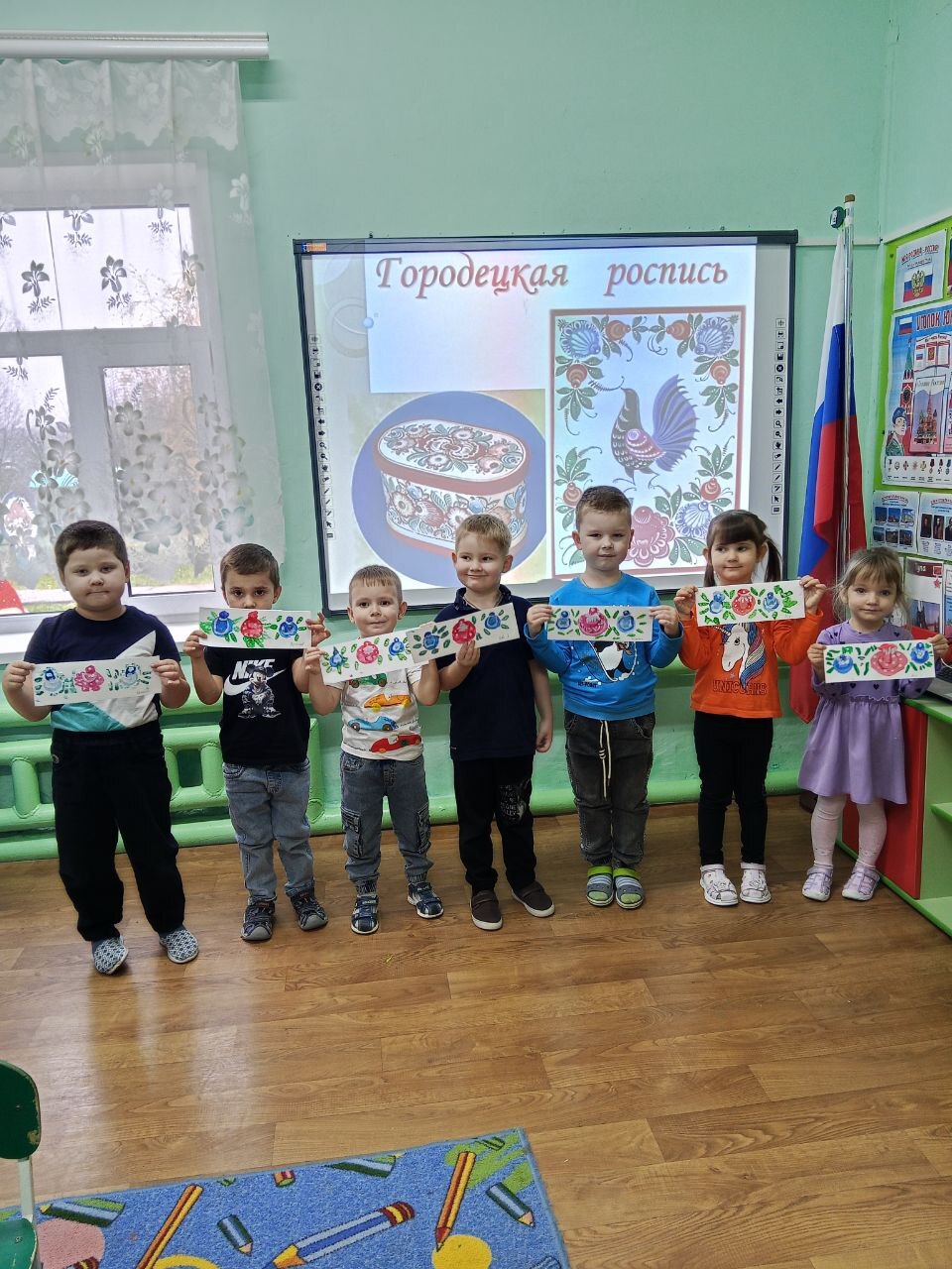 В День Городецкой росписи педагог Плавского детского сада «Радуга» познакомила своих воспитанников с одним из выразительнейших русских ремесел.