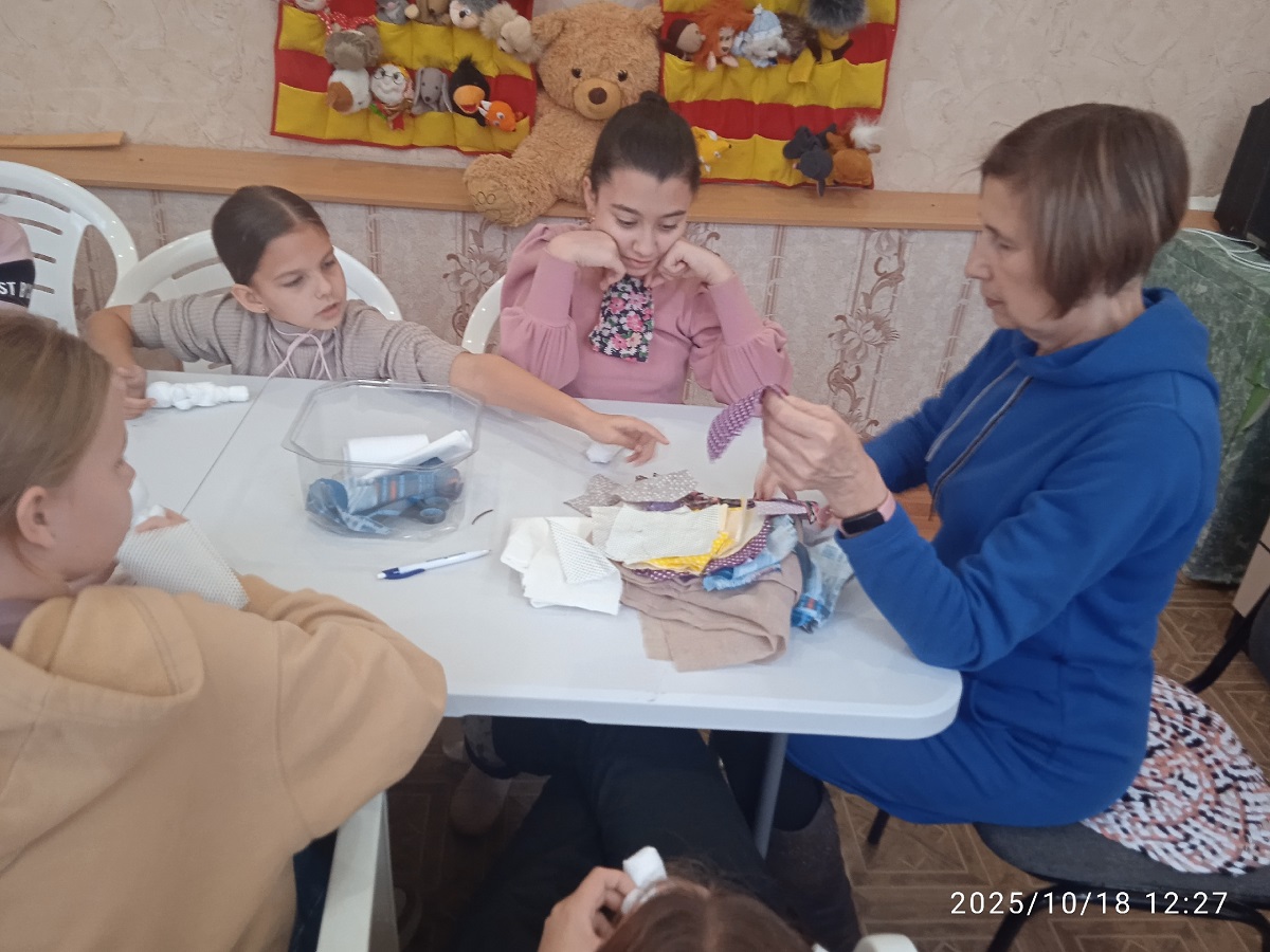 Затем для юных артистов провели мастер-класс по изготовлению куклы-мотанки. Подобные мастер-классы стали в театре традицией: дети не только непосредственно занимаются актерской деятельностью, но и изучают историю народной русской культуры.