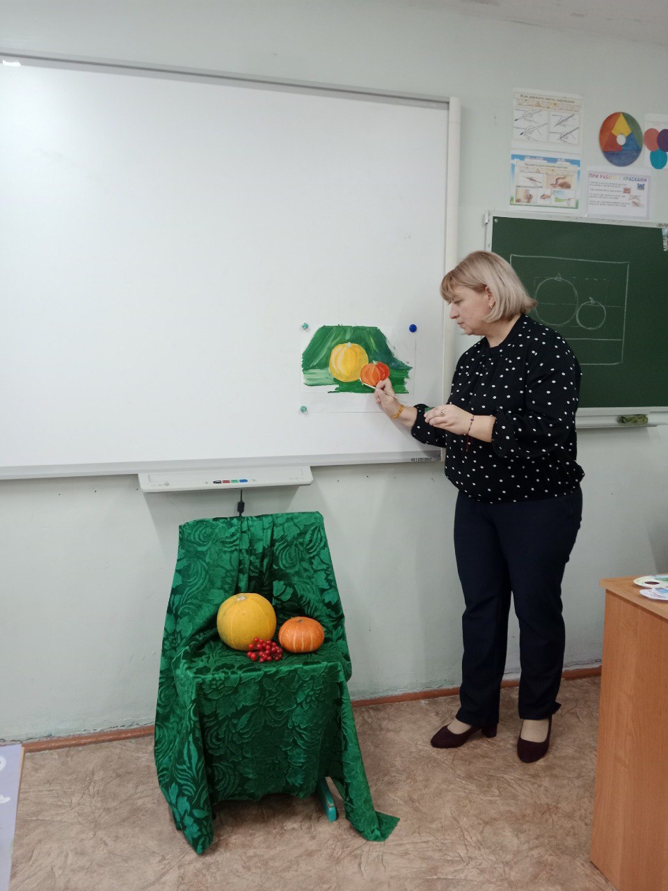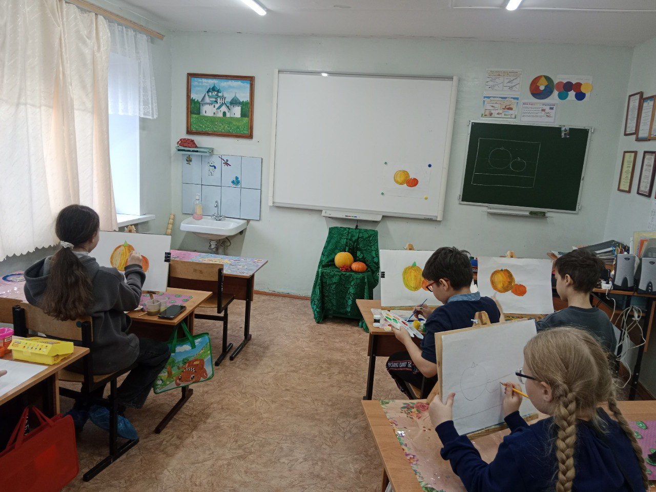 Педагог художественного объединения «Изостудия» Дома детского творчества Мария Криушичева провела увлекательное занятие, посвящённое рисованию осеннего натюрморта с главным героем — тыквой.