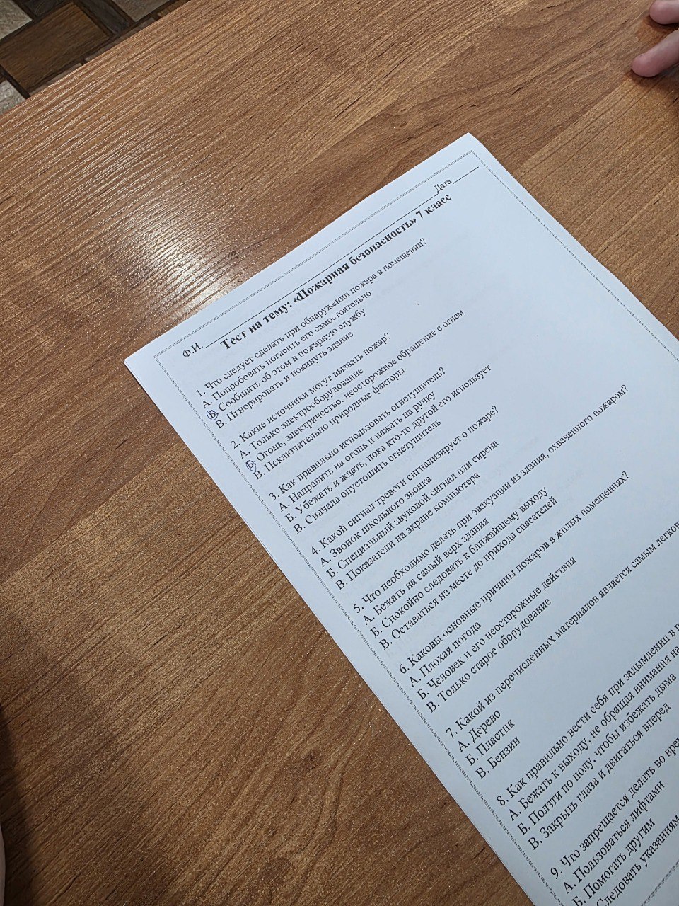 Учащиеся седьмого класса Центра образования № 1 продемонстрировали отличные знания по основам пожарной безопасности, успешно справившись с итоговым проверочным тестом.