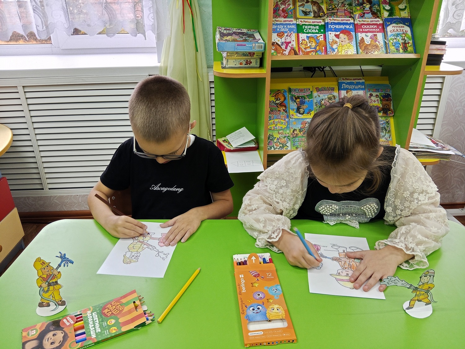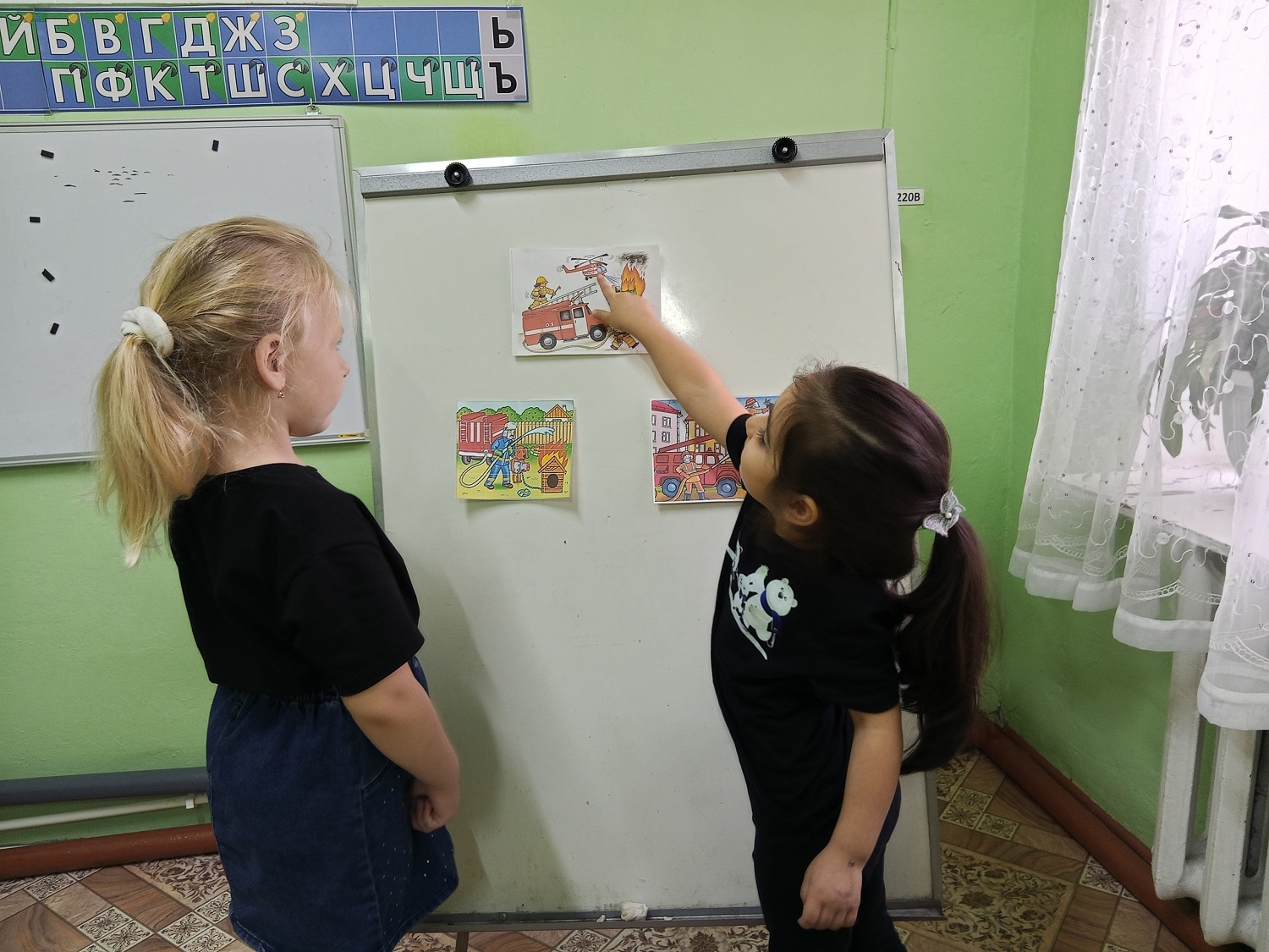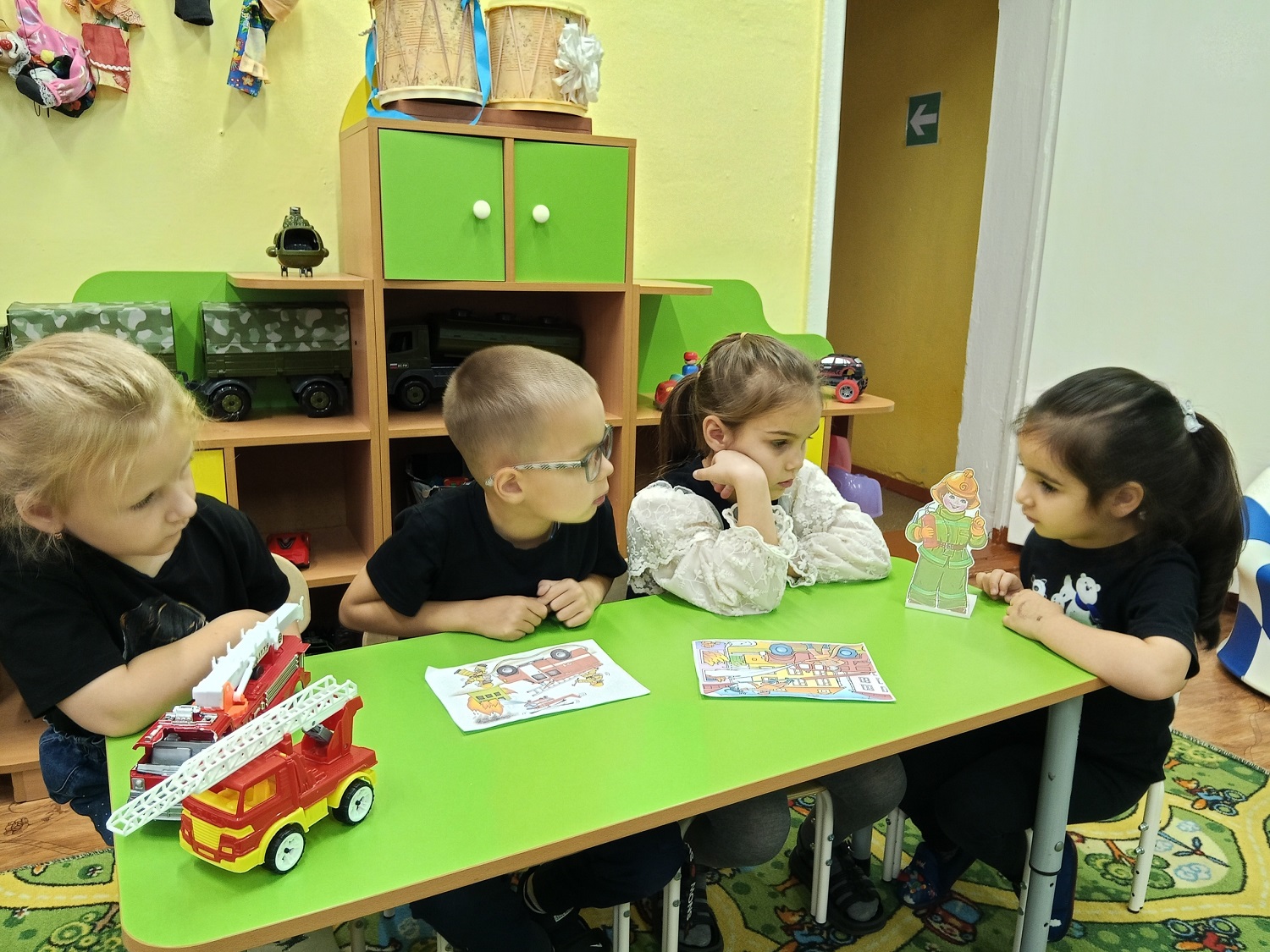 Разглядывая готовые изображения, раскрашивая тематические шаблоны, изучая, в чем, с чем и на какой машине работают пожарные, дети получили основные сведения об этой непростой и благородной профессии.