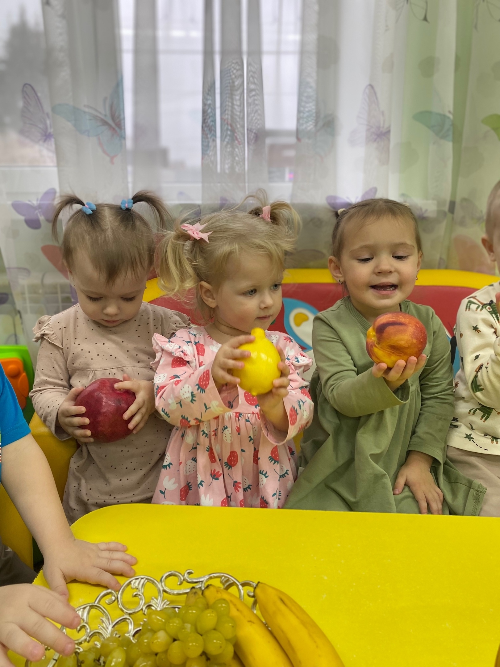 Малыши узнали, что окружающий их плодовый мир необычайно разнообразен: фрукты манят ароматом, а их вкус может быть сладким и нежным или приятно кисловатым.