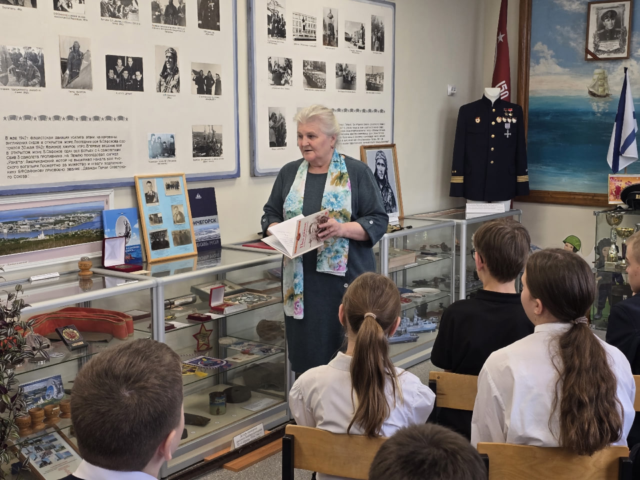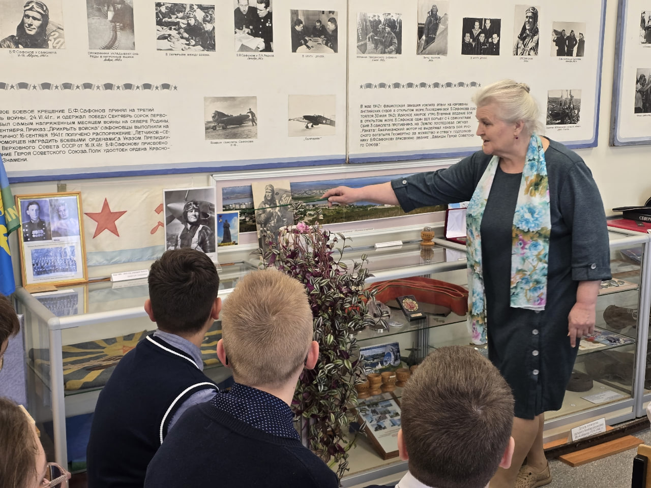 В Плавской школе №1 имени дважды Героя Советского Союза Б.Ф. Сафонова прошел традиционный музейный урок, посвященный Герою Советского Союза, летчику-североморцу Захару Сорокину, однополчанину прославленного героя Бориса Сафонова.