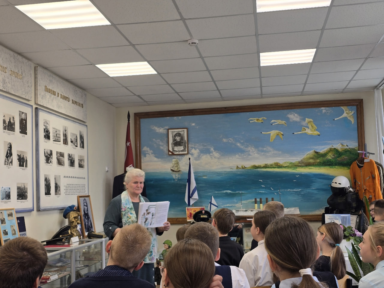 Учащиеся 6 «А» класса познакомились с содержанием книги Захара Сорокина «Поединок в снежной пустыне», которую передала в дар школе его дочь Мария Захаровна.