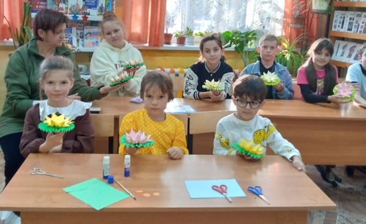 В Плавской детской библиотеке продолжаются встречи клуба «Большой семейный выходной «Мастерешки». На очередном занятии сотрудники библиотеки провели для ребят и их родителей тематический мастер-класс «Кувшинка».