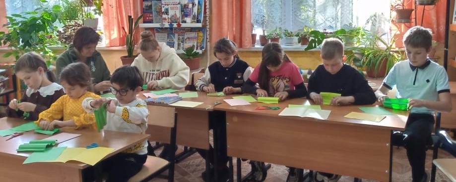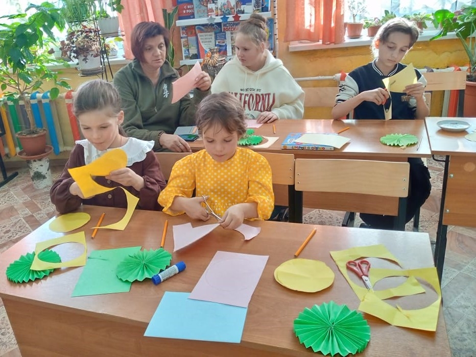 После познавательной части занятия участники приступили к творческой работе – созданию объемной аппликации с изображением цветка.