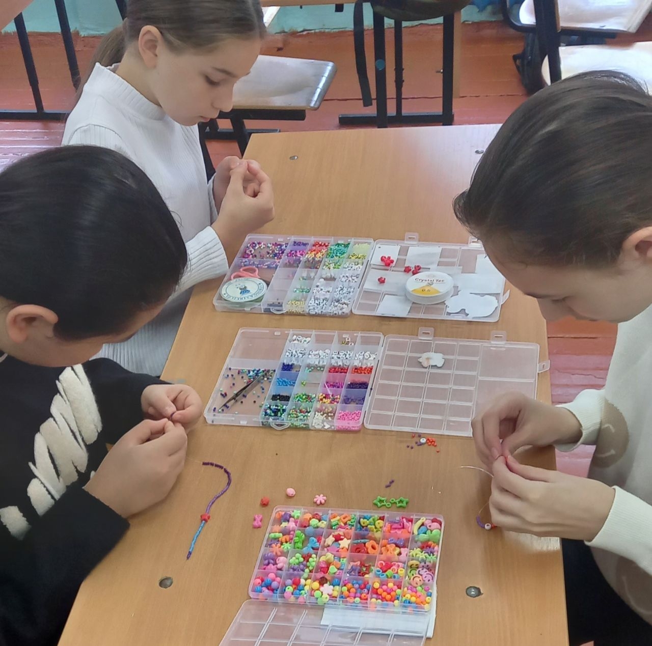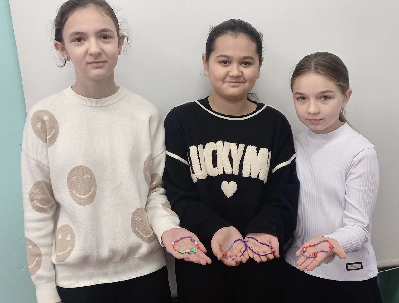 После просмотра и обсуждения киноленты ребята взялись за изготовление подарков — браслетов из бисера и бусин. Каждое изделие они создавали с теплотой и добрыми пожеланиями для будущих получателей.
