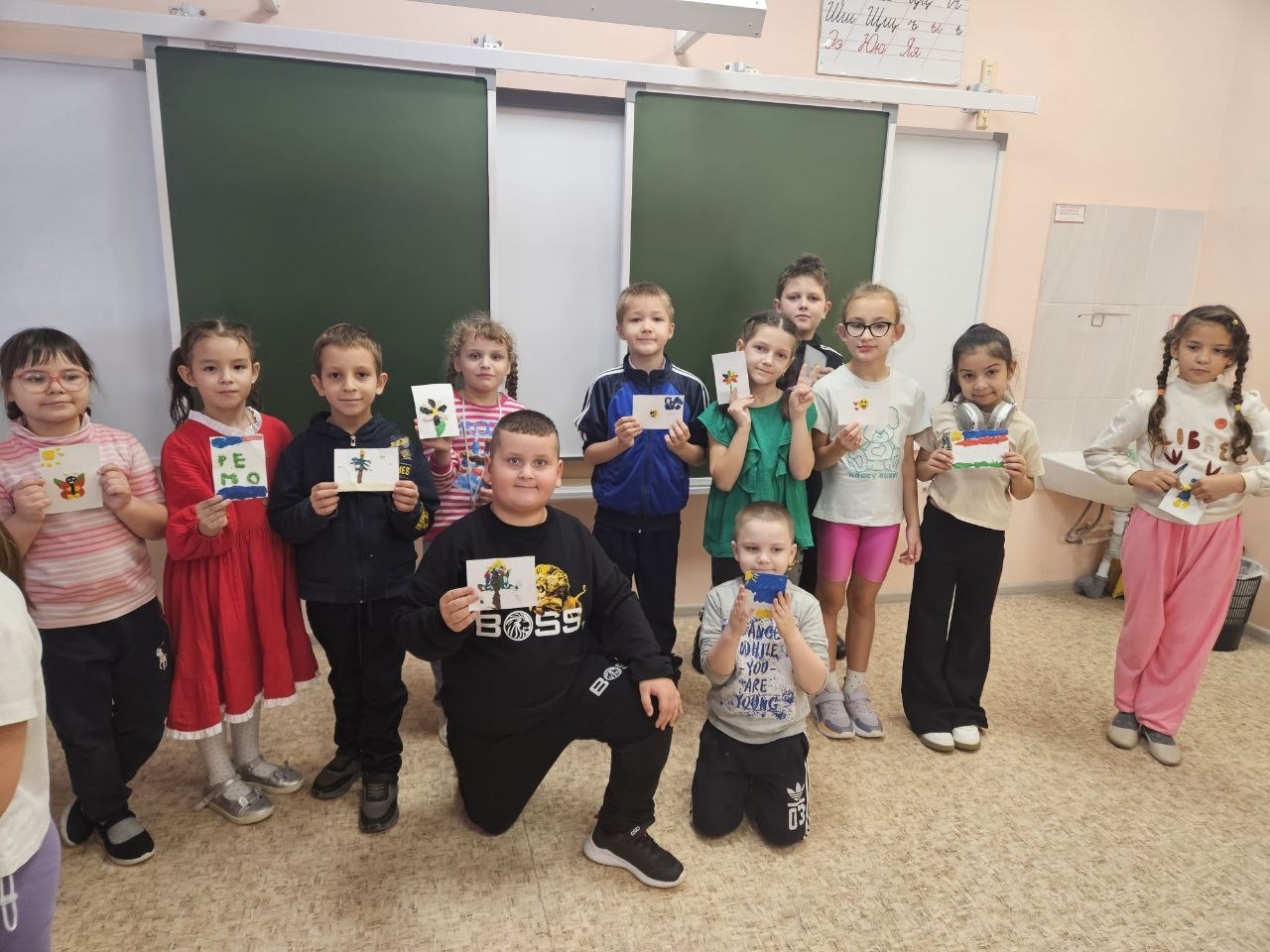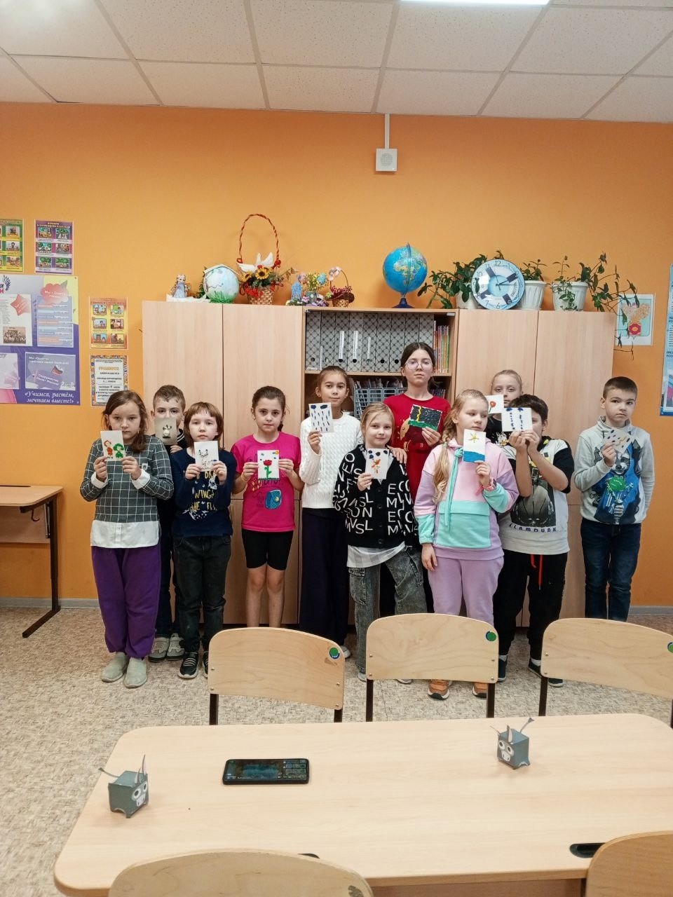 Ребята также посетили модельную библиотеку нового поколения, где для них провели экскурсию и мастер-класс по изготовлению открытки ко «Дню народного единства».