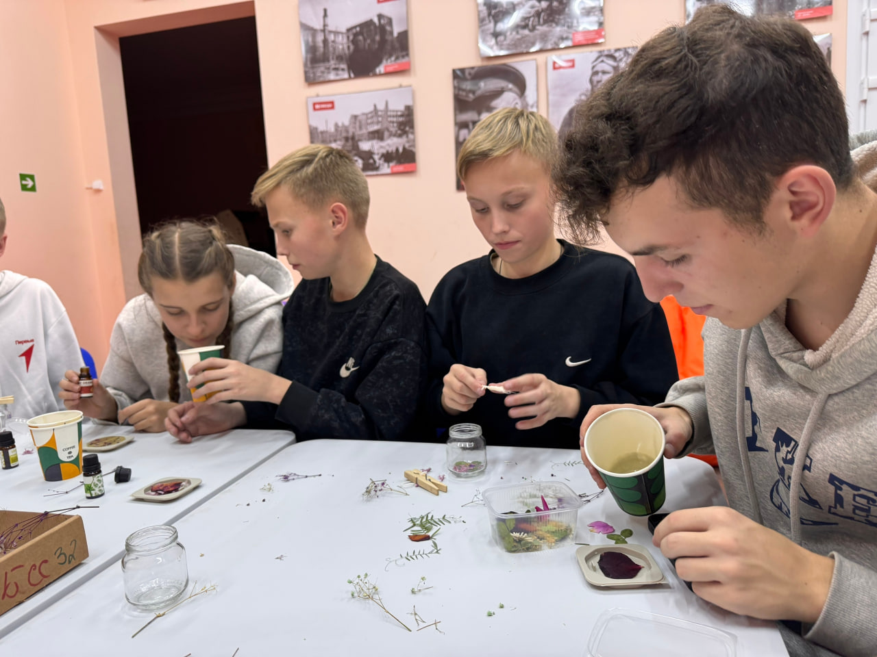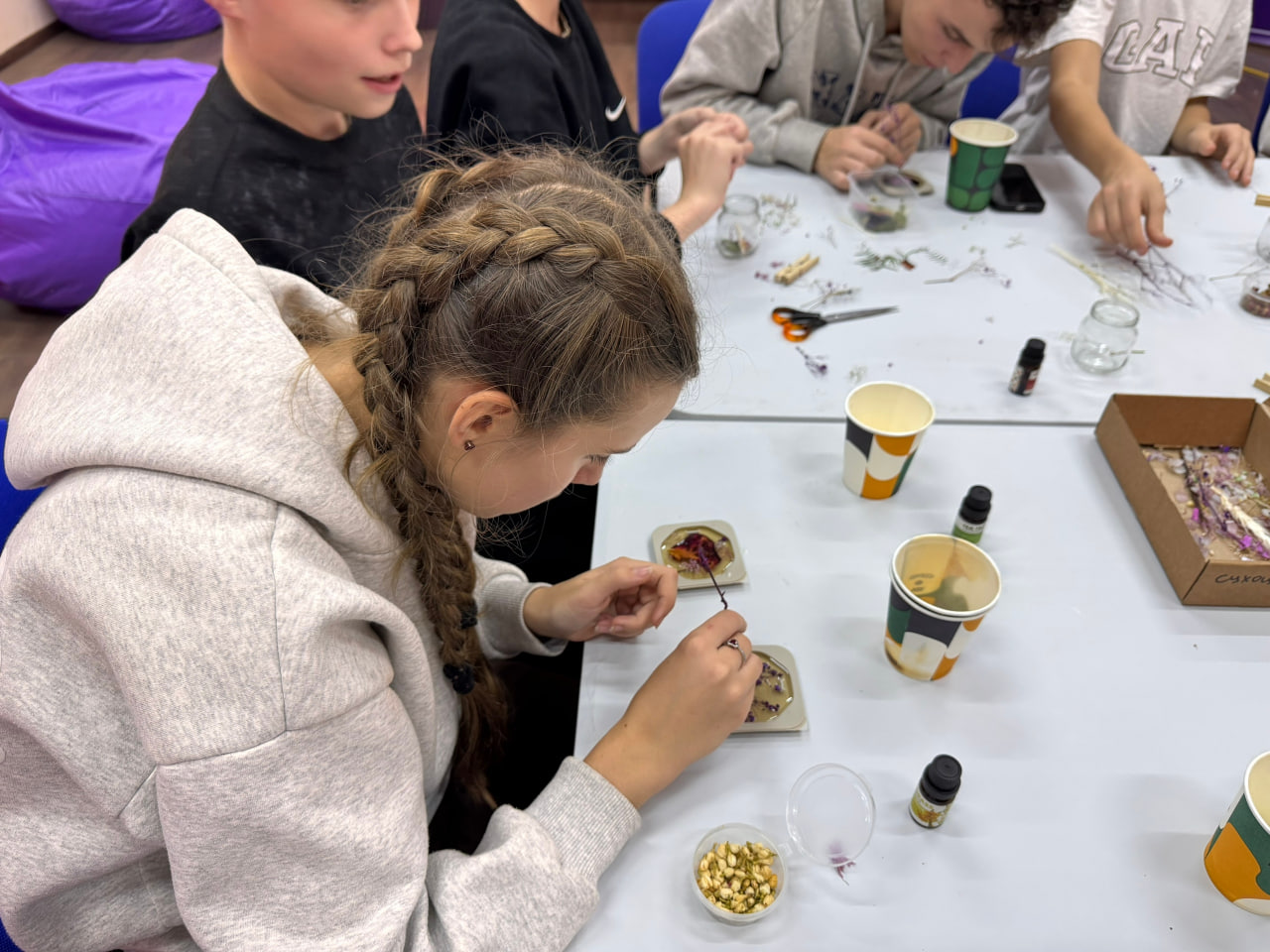 Ребята включились в процесс изготовления декоративных элементов, смешивая ароматные масла и воск. Результатом их труда стали красивые и ароматные свечи и саше, которые наполнили помещение приятными запахами.