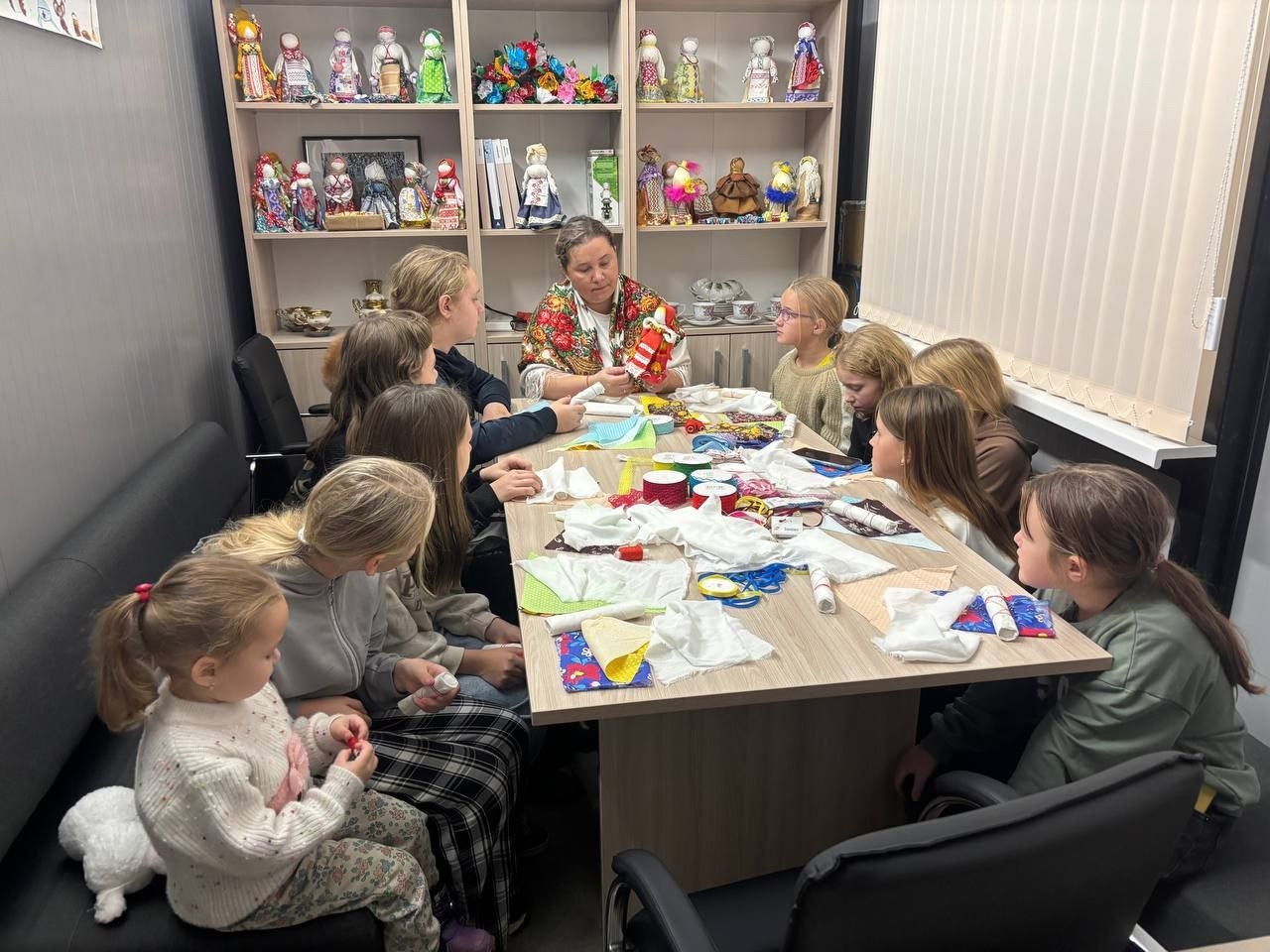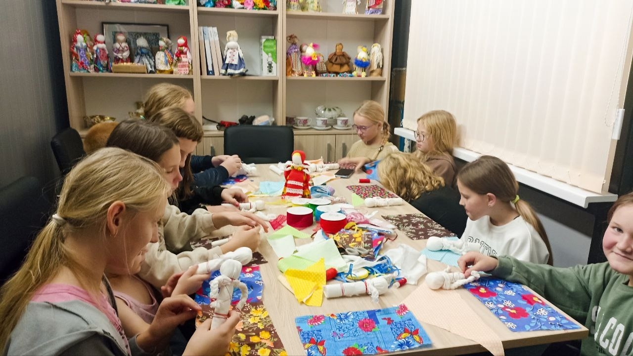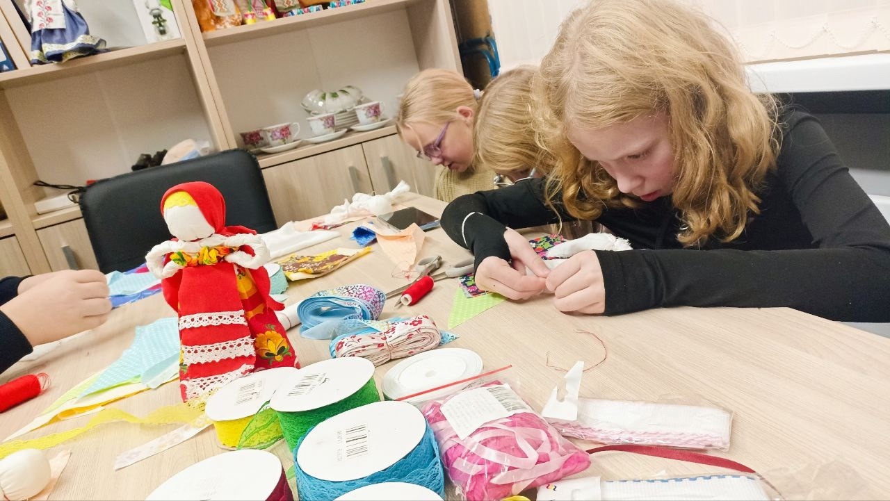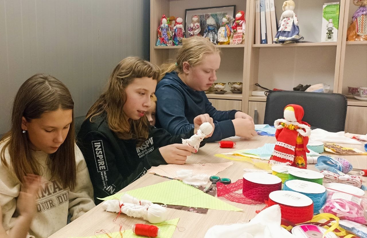 Под руководством мастера дети с увлечением сделали свои первые куклы-мотанки из ярких лоскутков ткани, познакомившись с древними традициями и прикоснувшись к народной культуре.