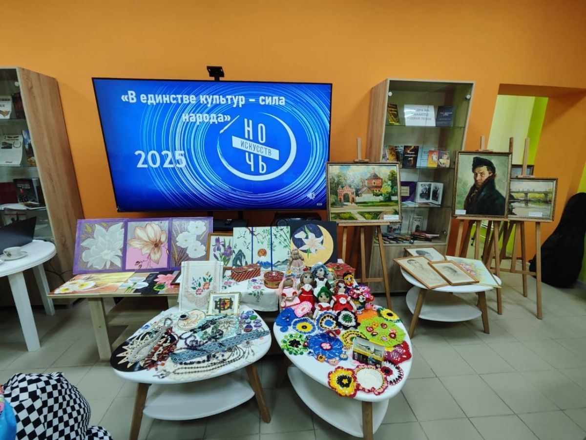 Во время Всероссийской акции «Ночь искусств», посвященной Дню народного единства, в библиотеке состоялась творческая встреча «Творение души и рук». Ее девиз – «В единстве культур – сила народа».