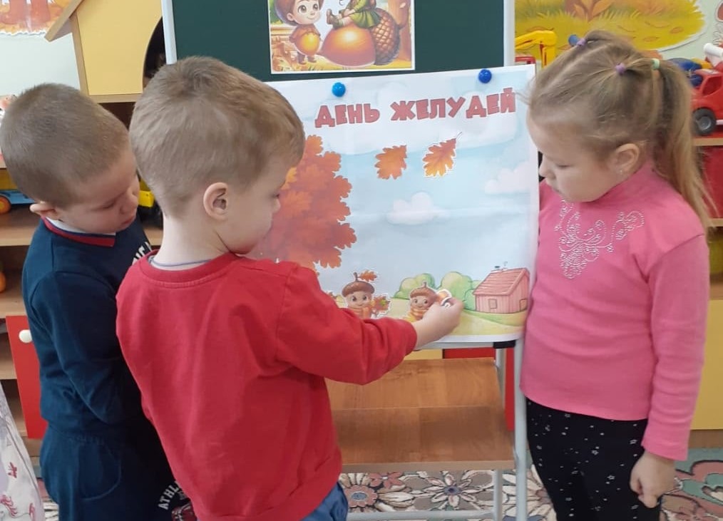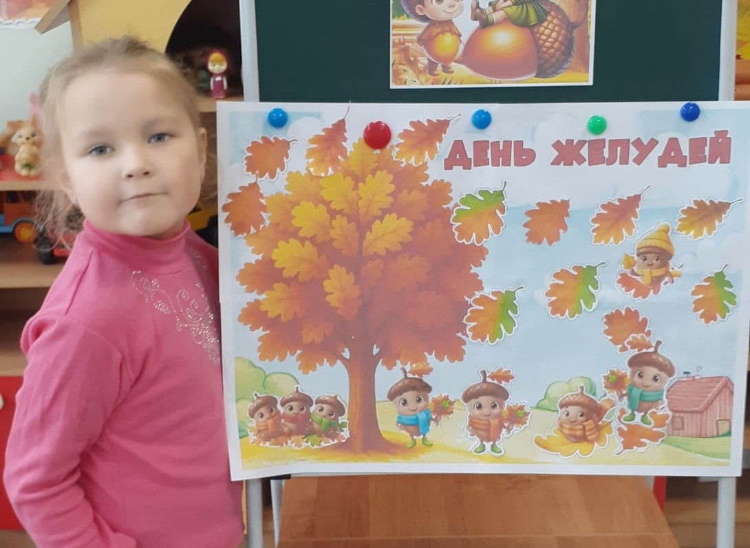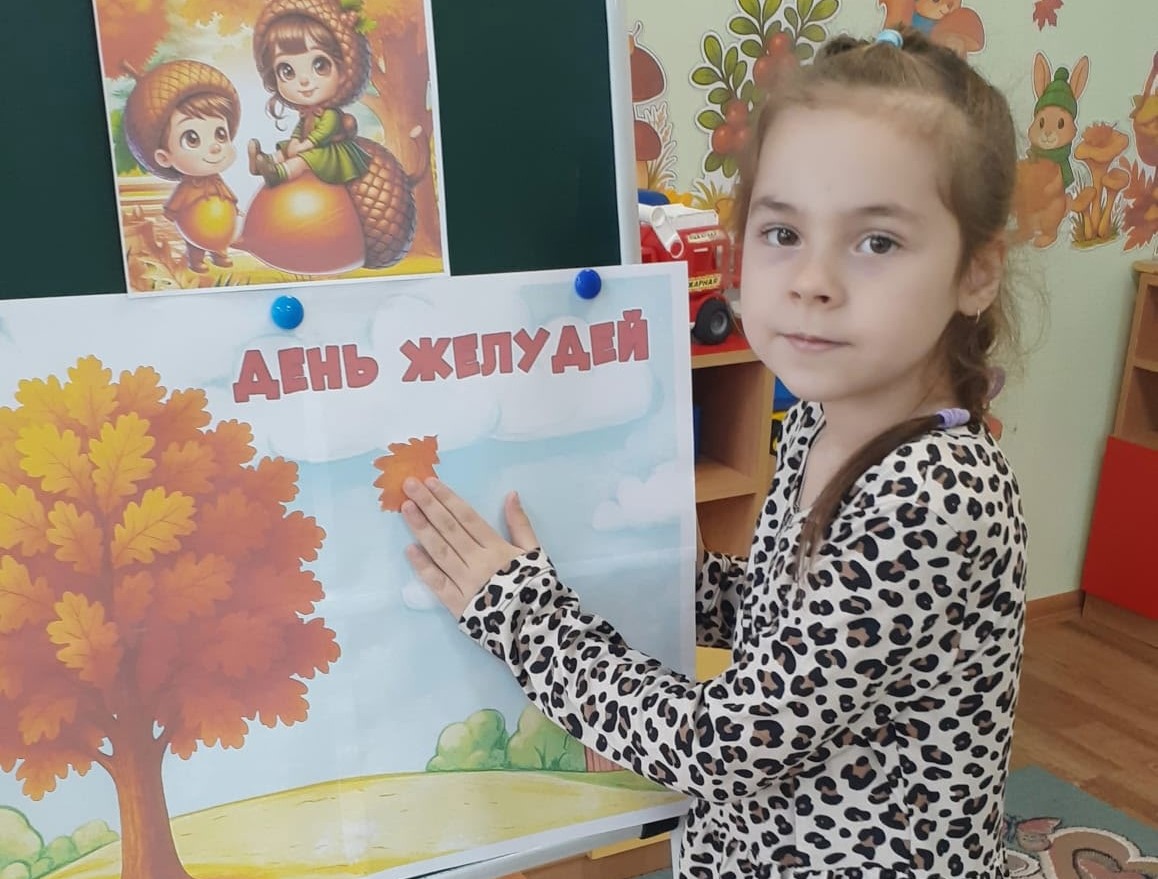 «Осень — удивительная пора, полная ярких красок и богатства природы! Это время, когда деревья одеваются в золотистые и багряные наряды, а воздух наполняется ароматом свежих яблок и пряностей. Каждый день приносит новые дары: грибы, урожай овощей и фруктов, а также символы осени — желуди.