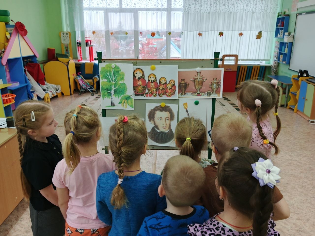 На третьей станции ребята вспомнили неофициальные символы нашей страны: берёзу, балалайку, самовар и, конечно же, великого русского писателя Александра Сергеевича Пушкина.