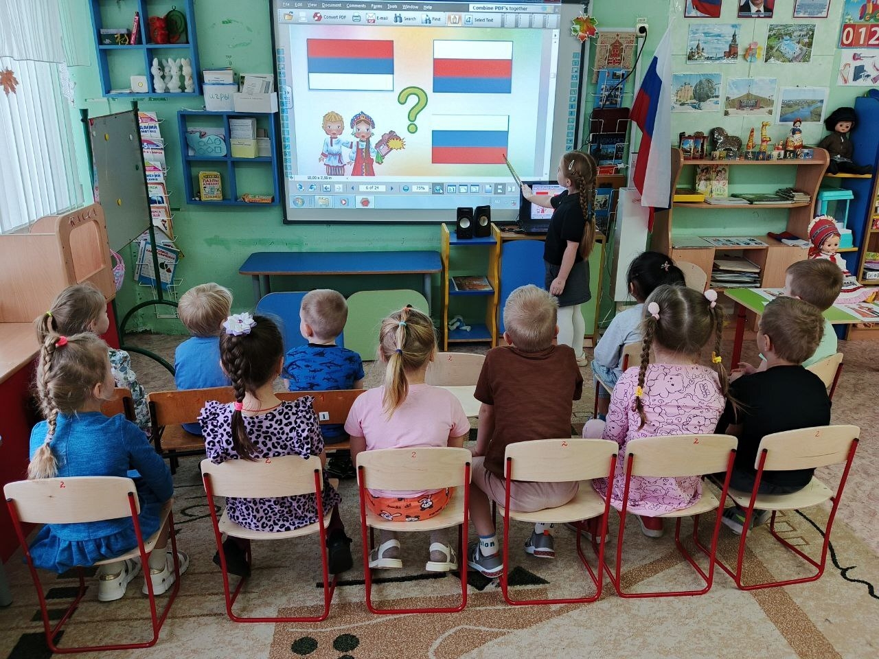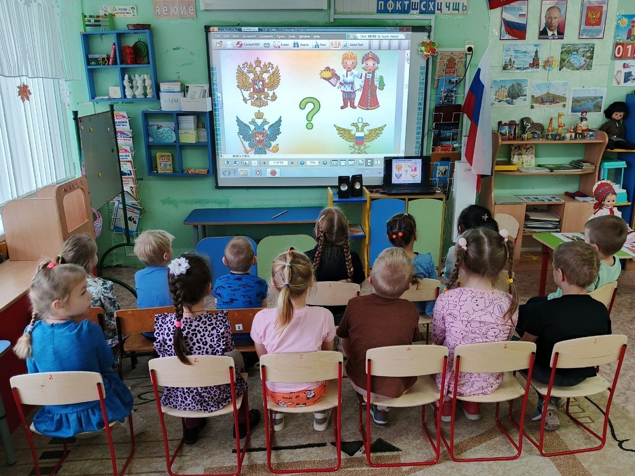 Дошкольники прошли тематические станции. На первой ребят ждала интерактивная викторина о символах и природе России.