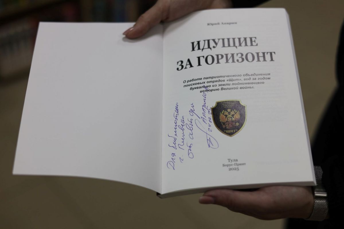 Вышла в свет новая книга тульского писателя, исследователя и поисковика Юрия Апарина «Идущие за горизонт». Она была передана в дар модельной библиотеке Плавска — как символ памяти, привязанной к земле, где многое из того, что описано в её страницах, происходило в реальности.