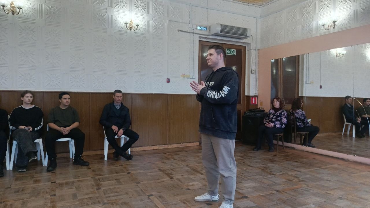 В стенах Центра культуры и досуга состоялся мастер-класс по сценическому движению для учеников 9 «В» класса Плавской школы №1 имени дважды Героя Советского Союза Б.Ф. Сафонова.